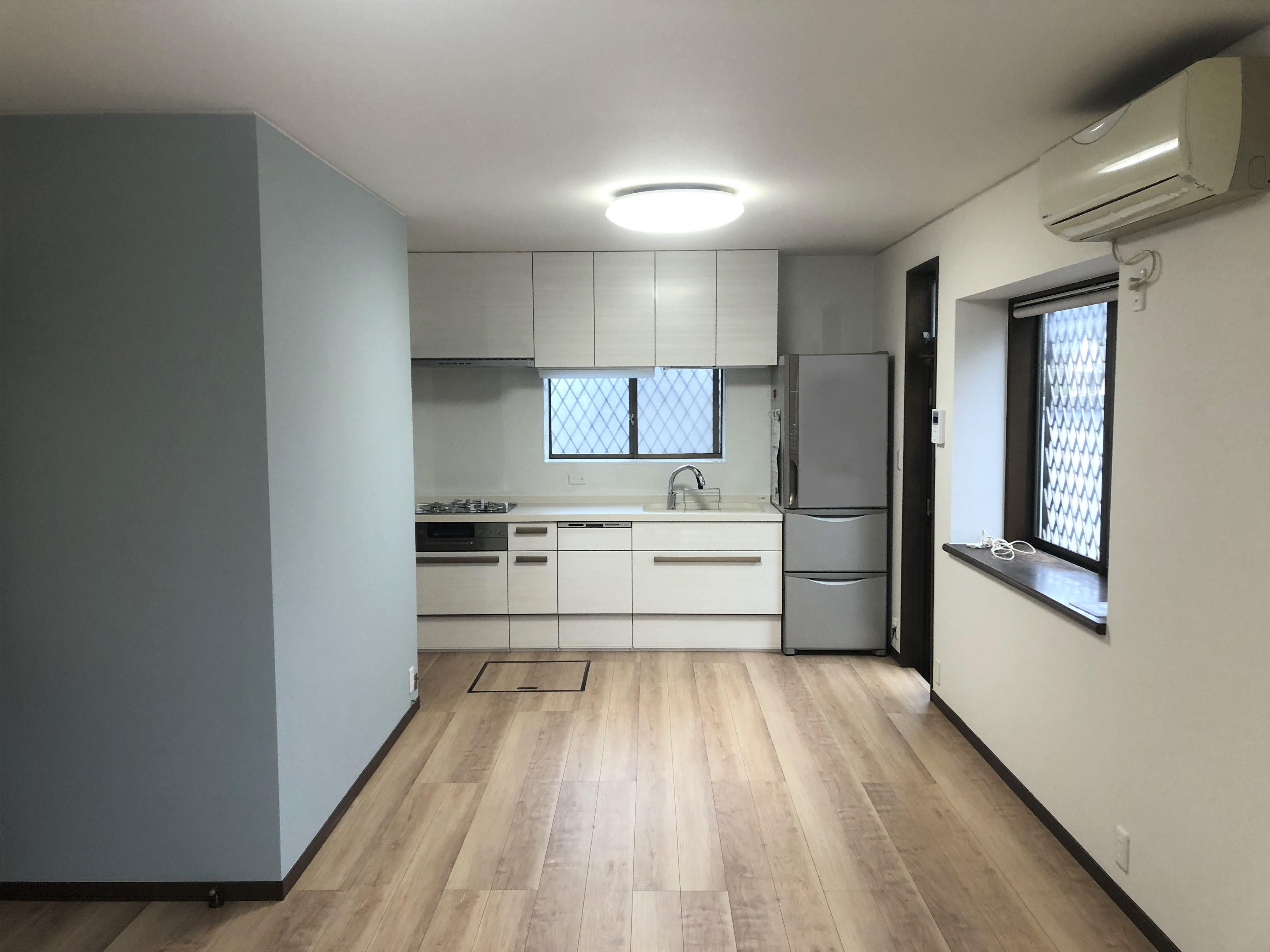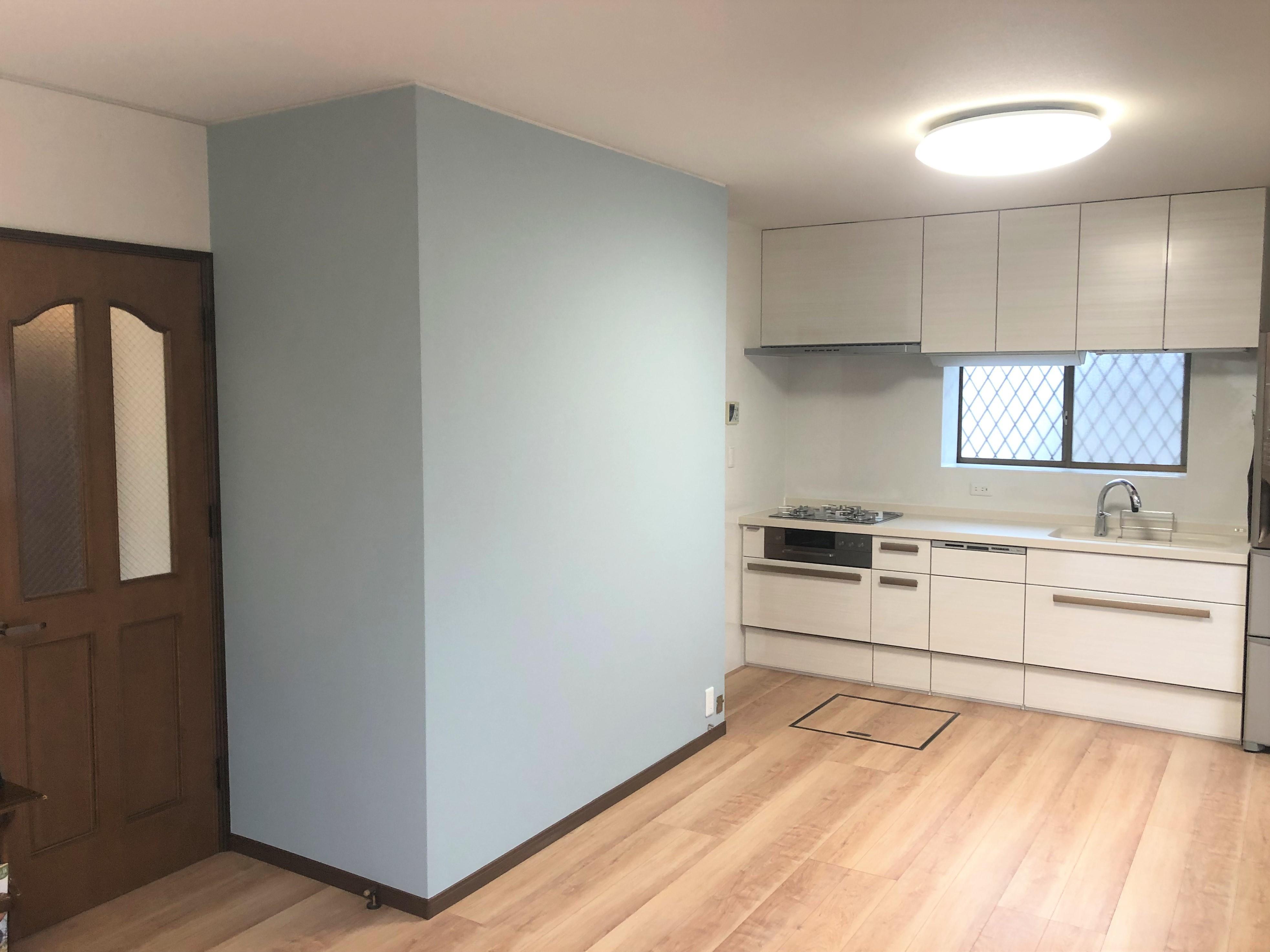 キッチンを新しく、床材・クロスの張り替えを行ったリフォームです。