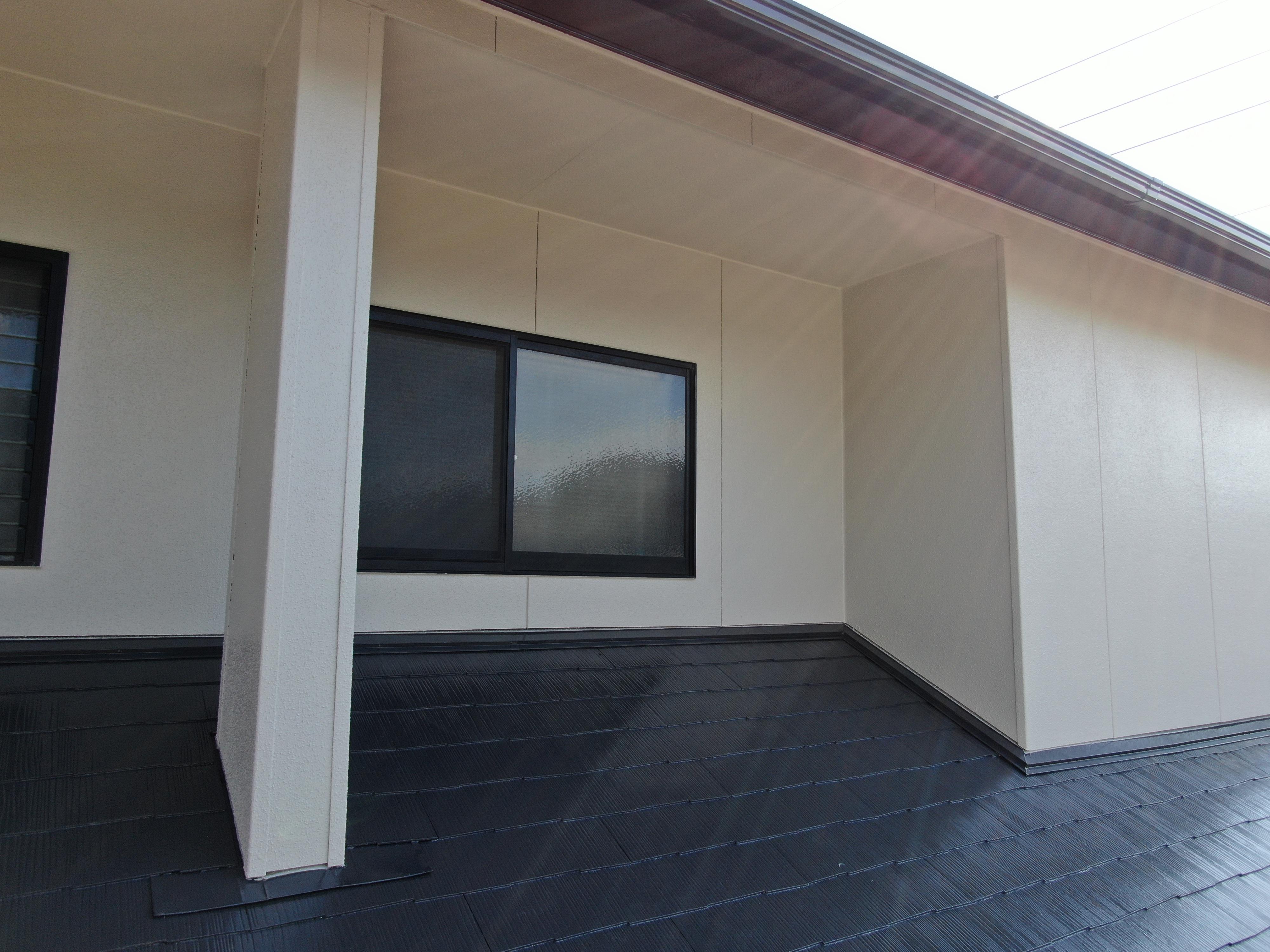 外壁はセラミックシリコン塗装を行いました。 雨戸・雨樋・板金部分・軒天井 それぞれの部分ごとに必要な塗装を施しています。
