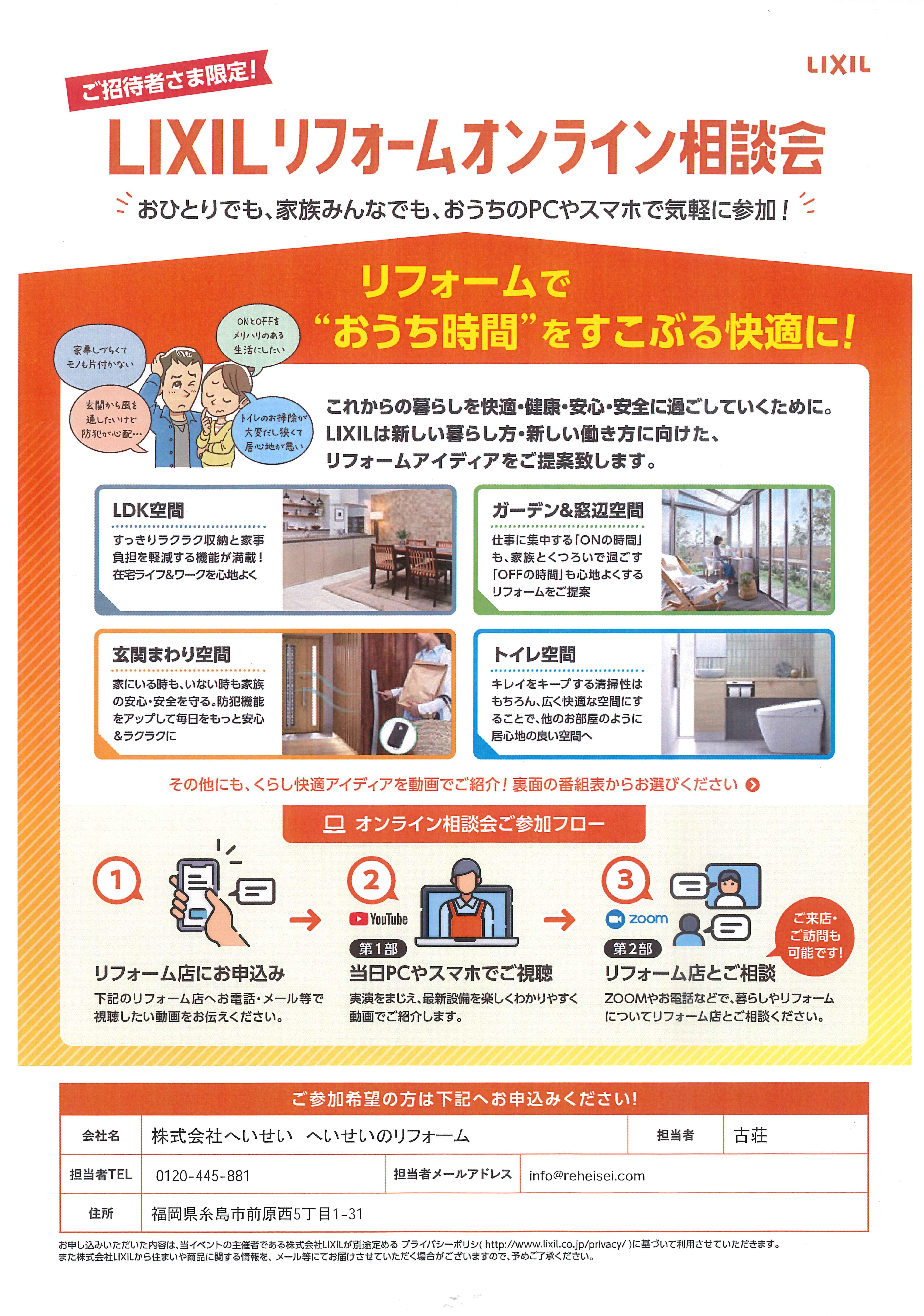 リフォーム動画を視聴して 住まいのお困りごとをオンラインで相談できます♪