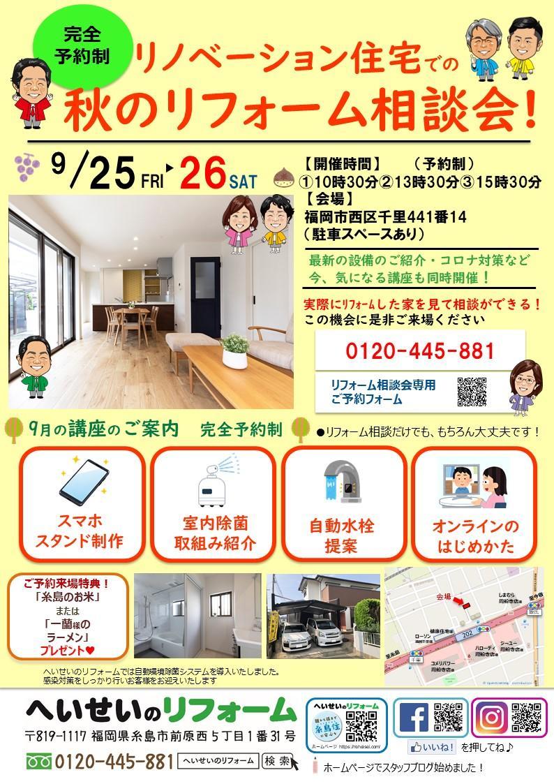 秋のリフォーム相談会 9/25(金)・9/26(土)【予約制】