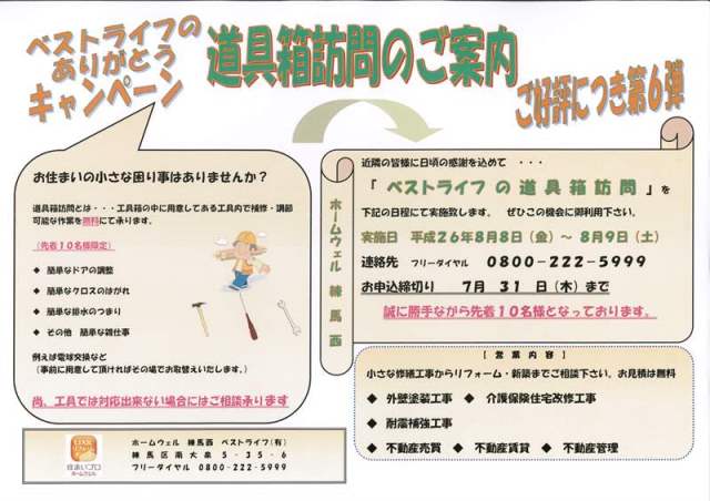道具箱訪問とは・・・工具箱の中に用意してある工具内で補修・調節可能な作業を無料にて承ります。