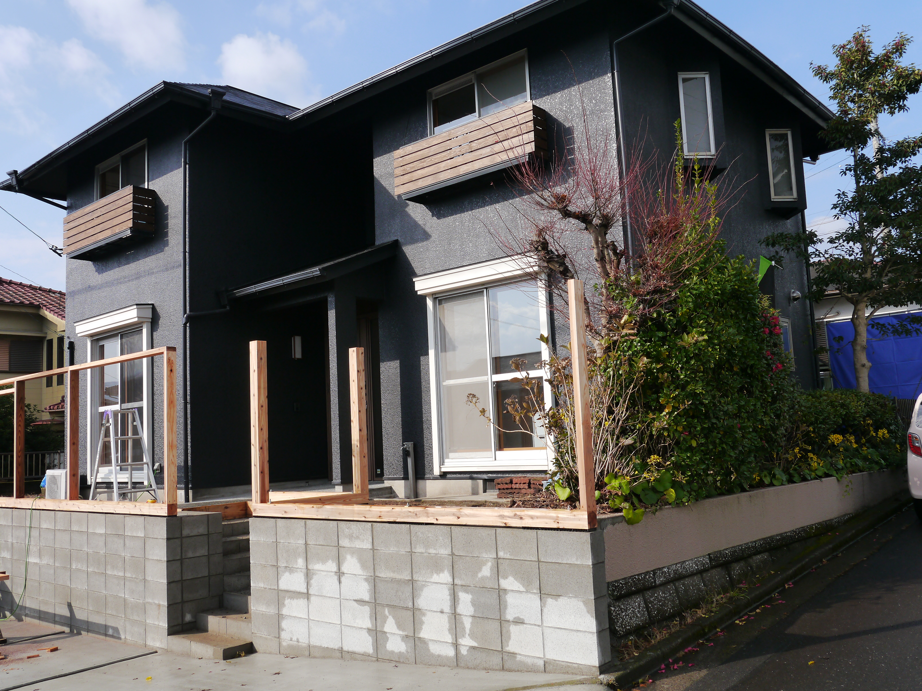 数年前に購入された中古住宅を「自分達らしく」リノベーションを行ないました。外回りは外壁塗装で白から黒へイメージチェンジ。無垢材のフローリングや内窓の取り付けで暖かさをアップ。