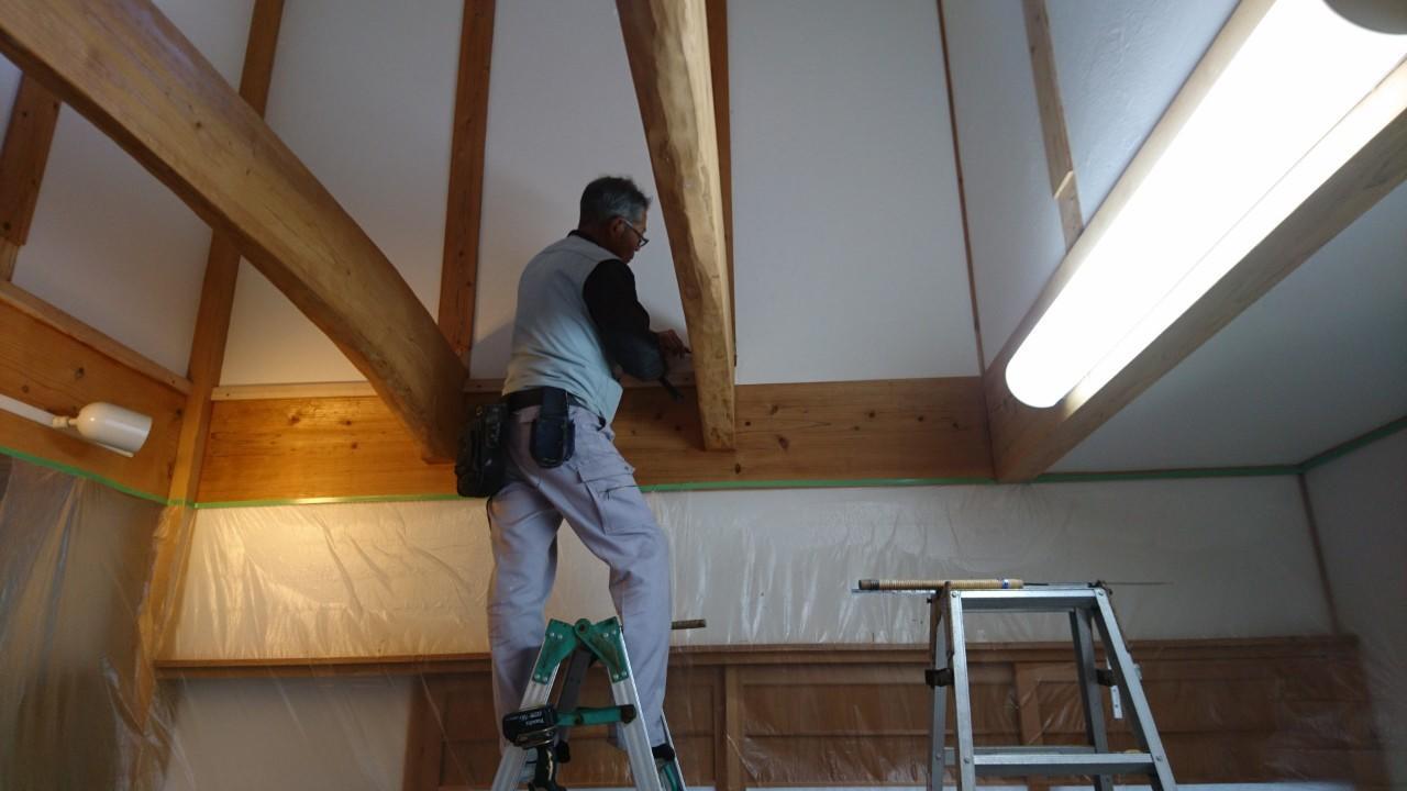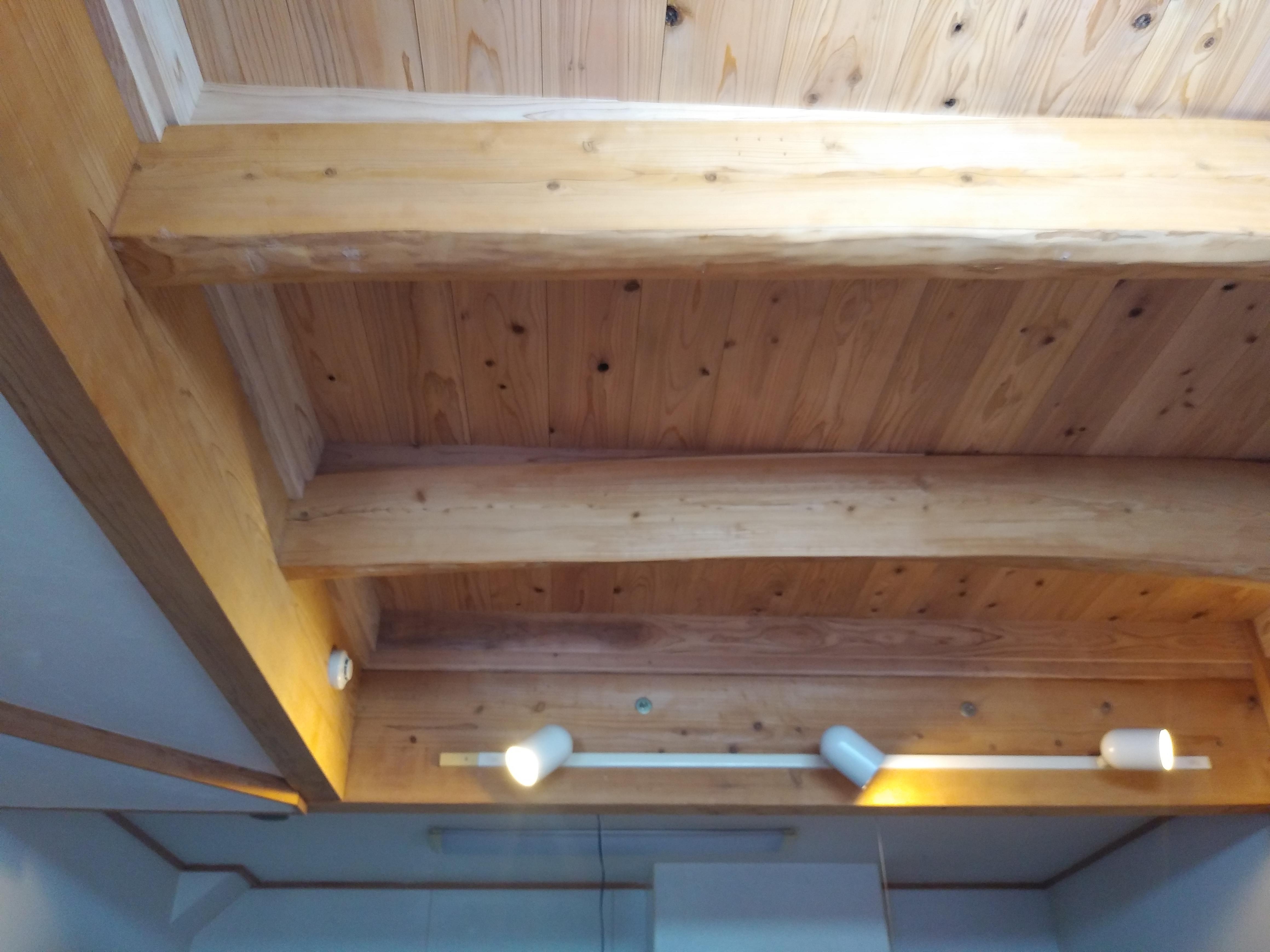 弊社OB様より吹き抜け部分を子供部屋にしたいとの依頼がありました。 タイコ梁を下地にして30mmの厚さの杉の浮造りフローリングを貼りました。 コンセントの増設、シーリングファンは照明へ。