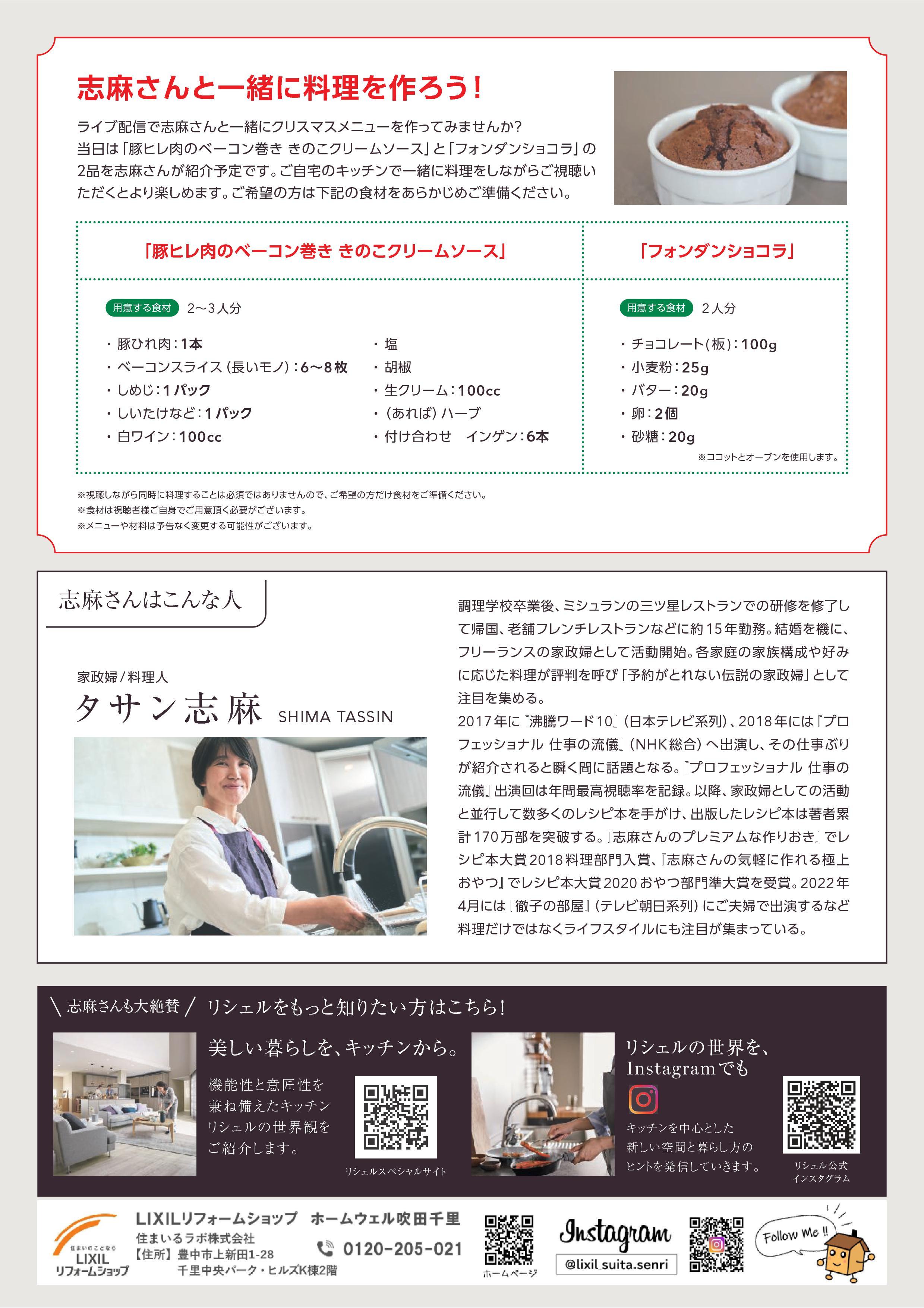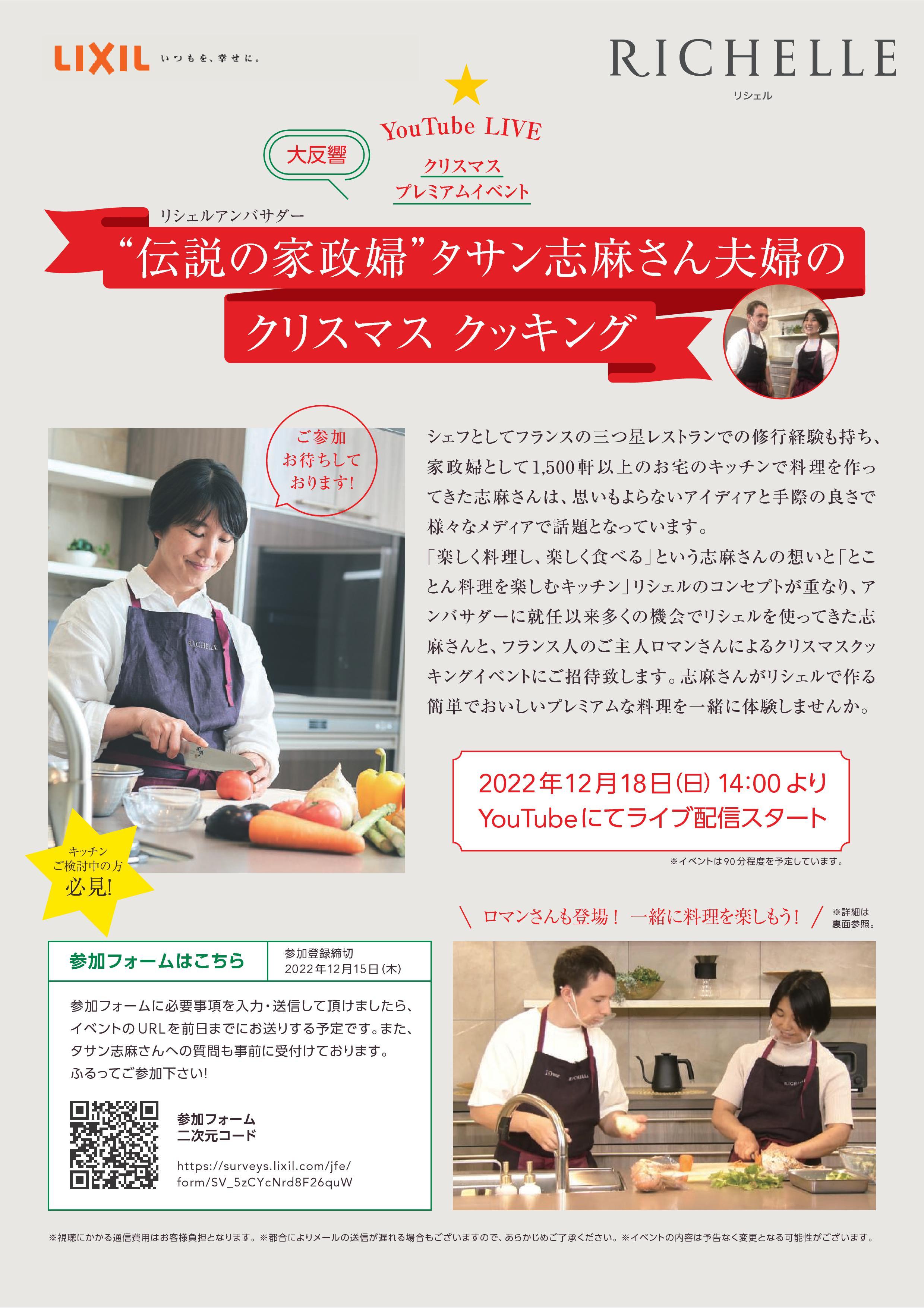 LIXIL | キッチン | タサン志麻さん×リシェルプレミアムYouTubeライブイベント