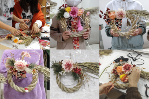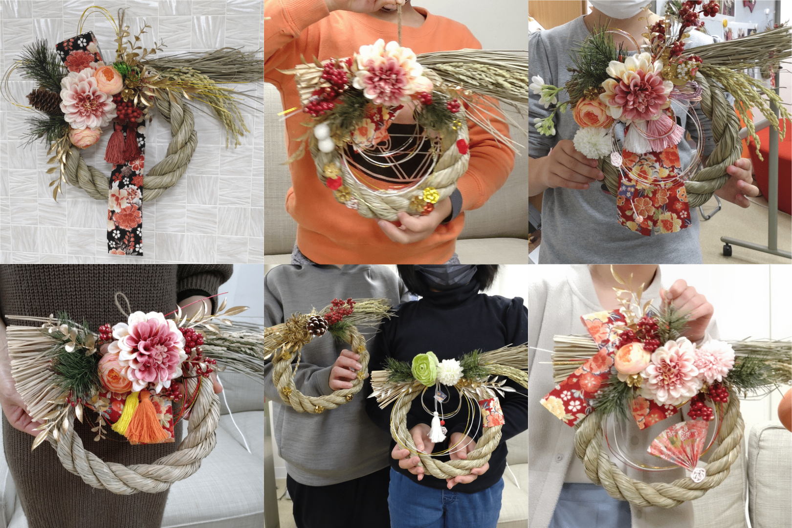 しめ飾りづくりのワークショップでは、親子やお友達で一緒に作成される姿はとても微笑ましく、思いの詰まった作品が出来上がりましたよ。