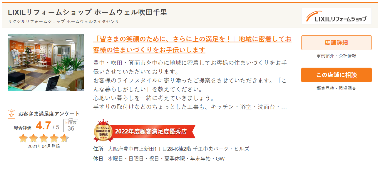 LIXILリフォームショップ ホームウェル吹田千里