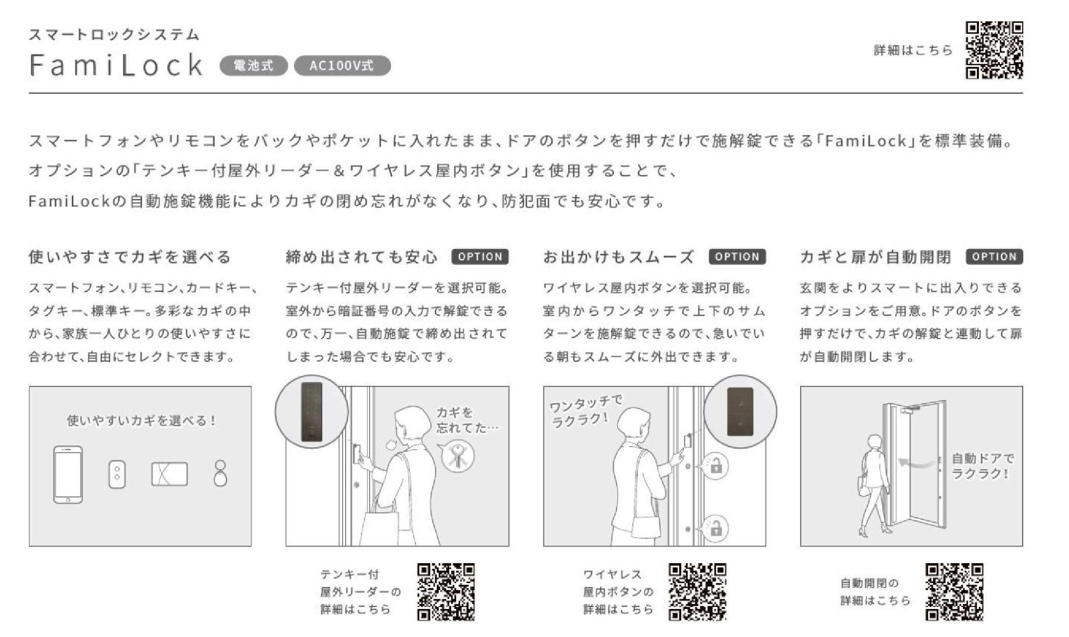 "ポケットイン"で鍵が開く 「#familock 」 を標準搭載。