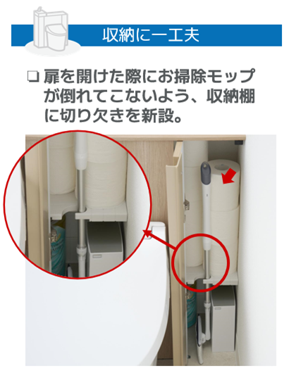 手の届きにくい便器奥をキャビネットで隠して、カンタンお掃除。