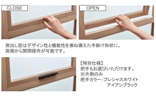 突き出し窓のステーや軸を見えにくくし、金属部品の目立ちを低減しました。