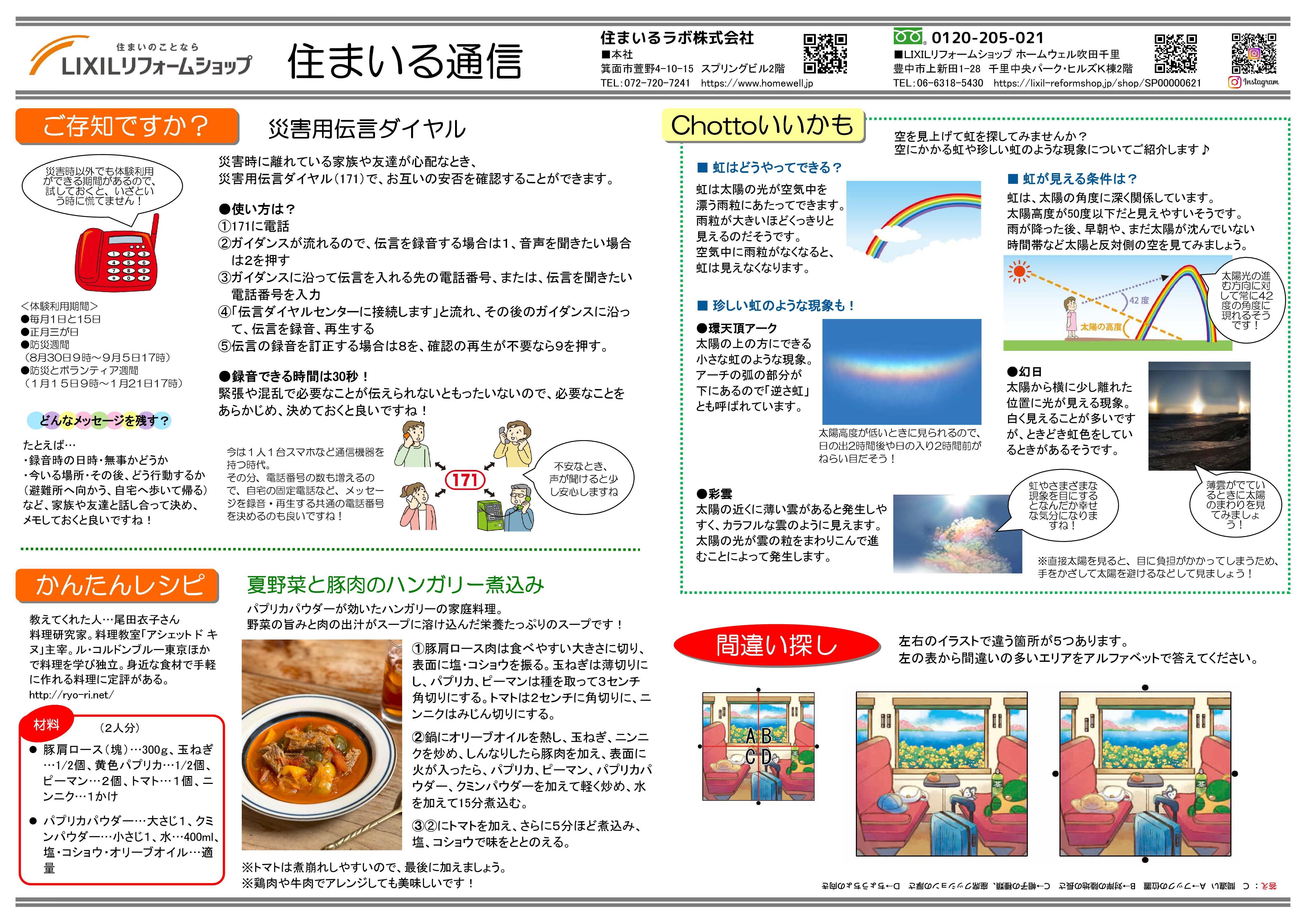 まだまだ暑さが続く毎日ですが、皆さんいかがお過ごしですか?ちょっと一息つきたいときに「住まいる通信」を手に取っていただけると嬉しいです。