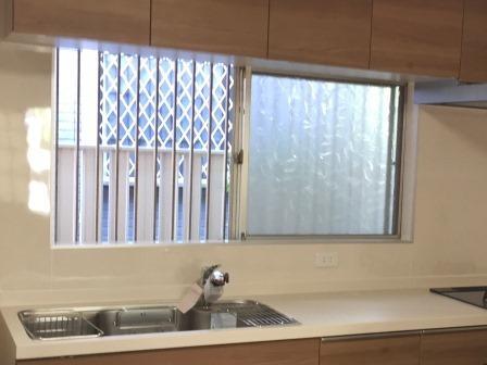 キッチンはL型から使い勝手のいいI型へ。扉カラーはチェリーで温かみのある木目でやさしい印象になりました。