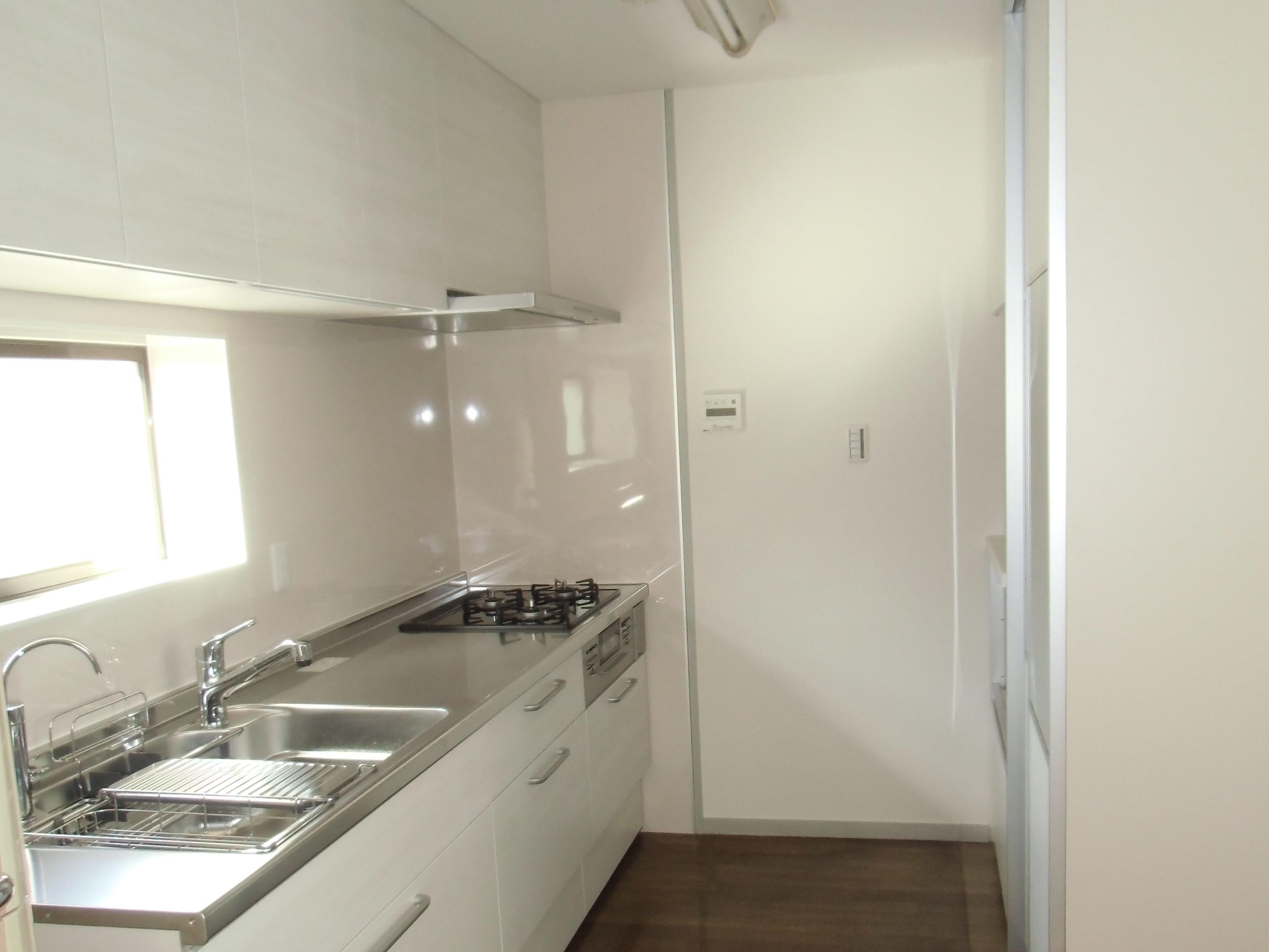 扉カラーはクリエアイボリーを選び、キッチン全体が明るい印象に。アシストポケットがついて調理もスムーズになりました。