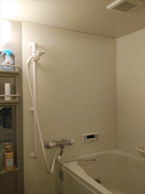 古くなった浴室のリフォームです。 シンプルながらも機能性高く快適なバスルームになりました。 合わせて脱衣室の床をテラコッタ調のクッションフロアに貼替えました。