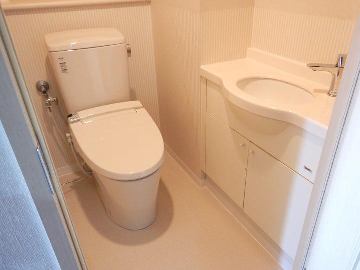 古くなったトイレのリフォームです。 メンテナンス性を重視し、「アクアセラミック」・「フチレス形状」でお手入れがしやすい清潔なトイレ空間になりました。