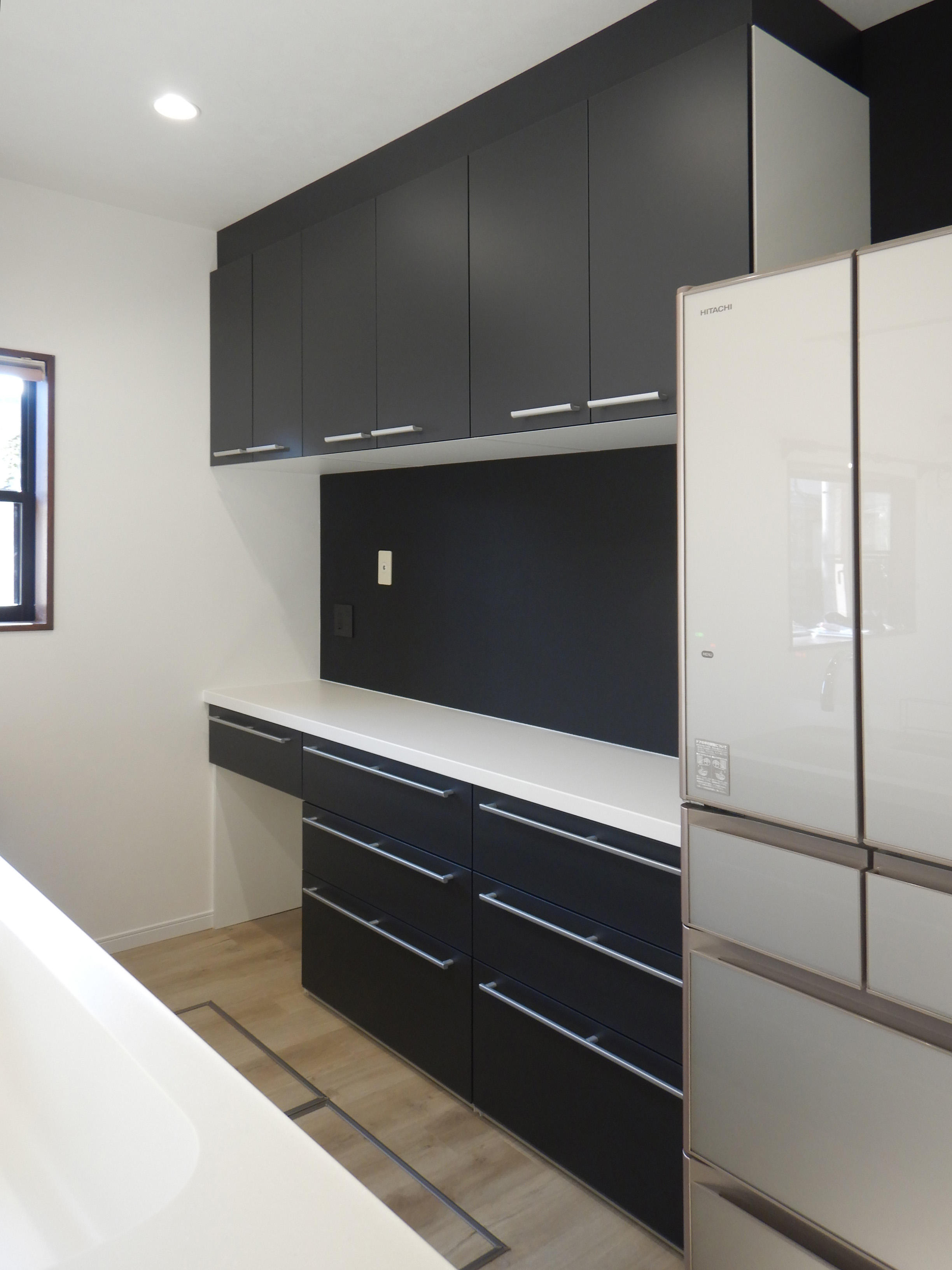 「せっかくのリフォームなので雰囲気を変えたい」ということで、何度も打合せを重ね、キリッとした印象を与えるブラックカラーのキッチンに。スタイリッシュで洗練された空間になりました。
