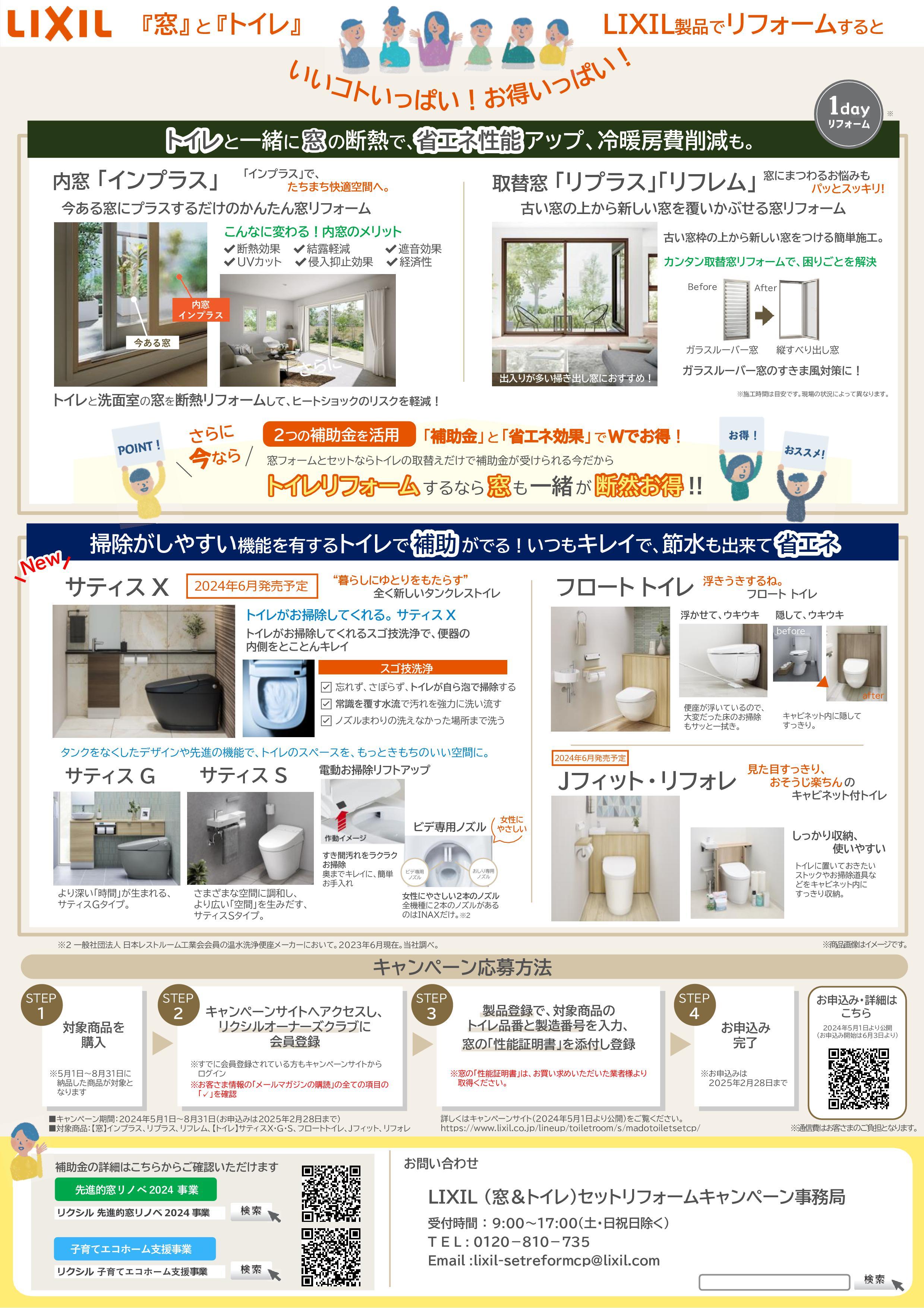 トイレや窓のリフォームをお考えの方は、是非この機会をお見逃しなく!
