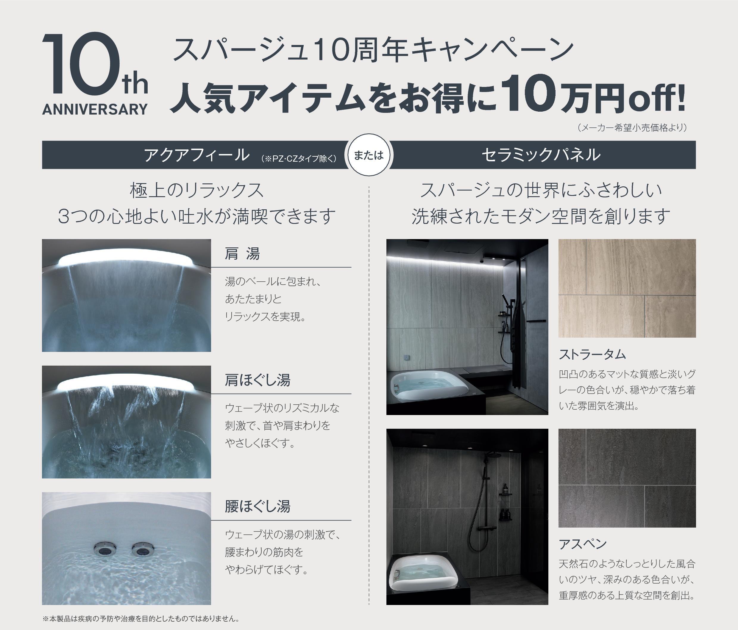LIXILの浴室「スパージュ10周年キャンペーン」のご案内です。