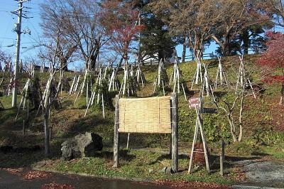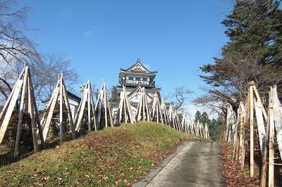 写真は冬囲いされた横手城です。きれいに冬囲いされています。