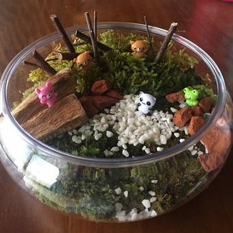 テラリウムとは、ガラスの容器を使って生物の飼育をしたり、植物を