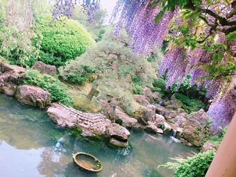藤、ツツジ、牡丹などの色鮮やかな花がたくさん咲いており、