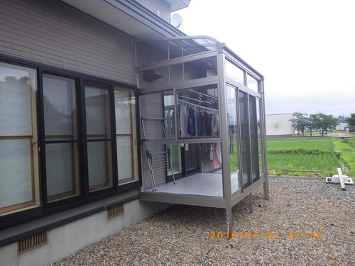 洗濯物に花粉が付くとのことで物干し場としてのサンルームをご提案いたしました。