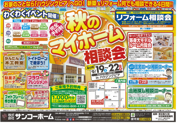 19-22日の4連休はぜひサンコーホームへ!