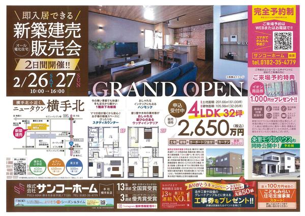 一覧へ戻る2月26日(土)、27日(日)ニュータウン横手北分譲地にて