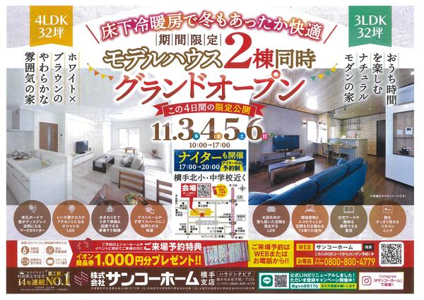 この度、横手北小・中学校近くにて、4日間の期間限定モデルハウス2棟同時グランドオープン