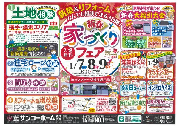 1月7日(土)~1月9日(月)は、ピアステージ横手展示場にて