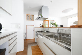 もともとは離れだった建物を増築しました。北側にあった独立キッチンを日の当たる南側に移動させることで家族だんらんの空間を実現しました。