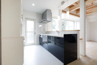 ご夫婦で晩酌をする機会が多いので、キッチンは対面式にして背面にお酒をしまう棚を設け、暮らしを一層愉しめる工夫も随所に散りばめました。