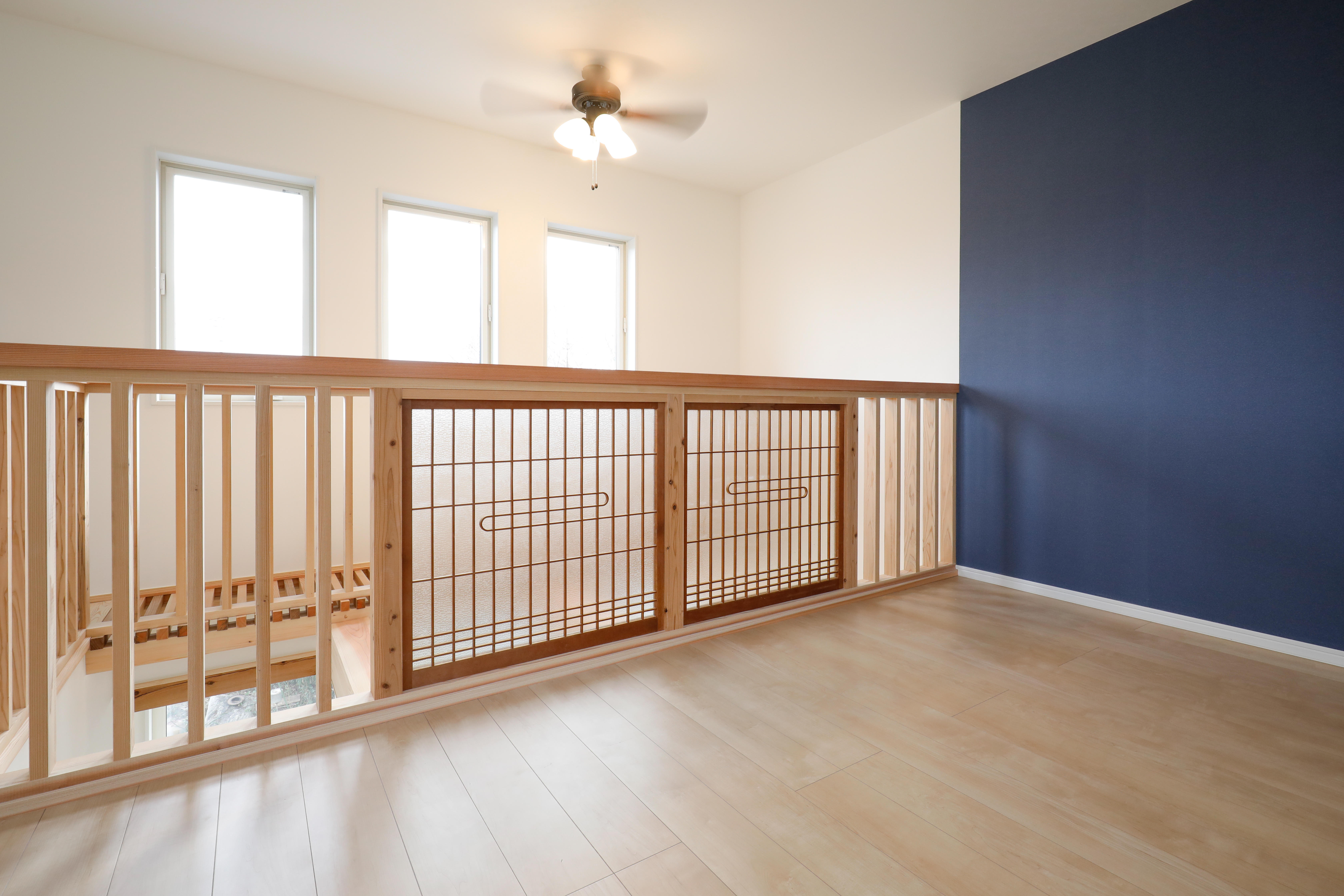2階のホールには旧宅の建具を再利用し、新しさと懐かしさが程よく調和しています。