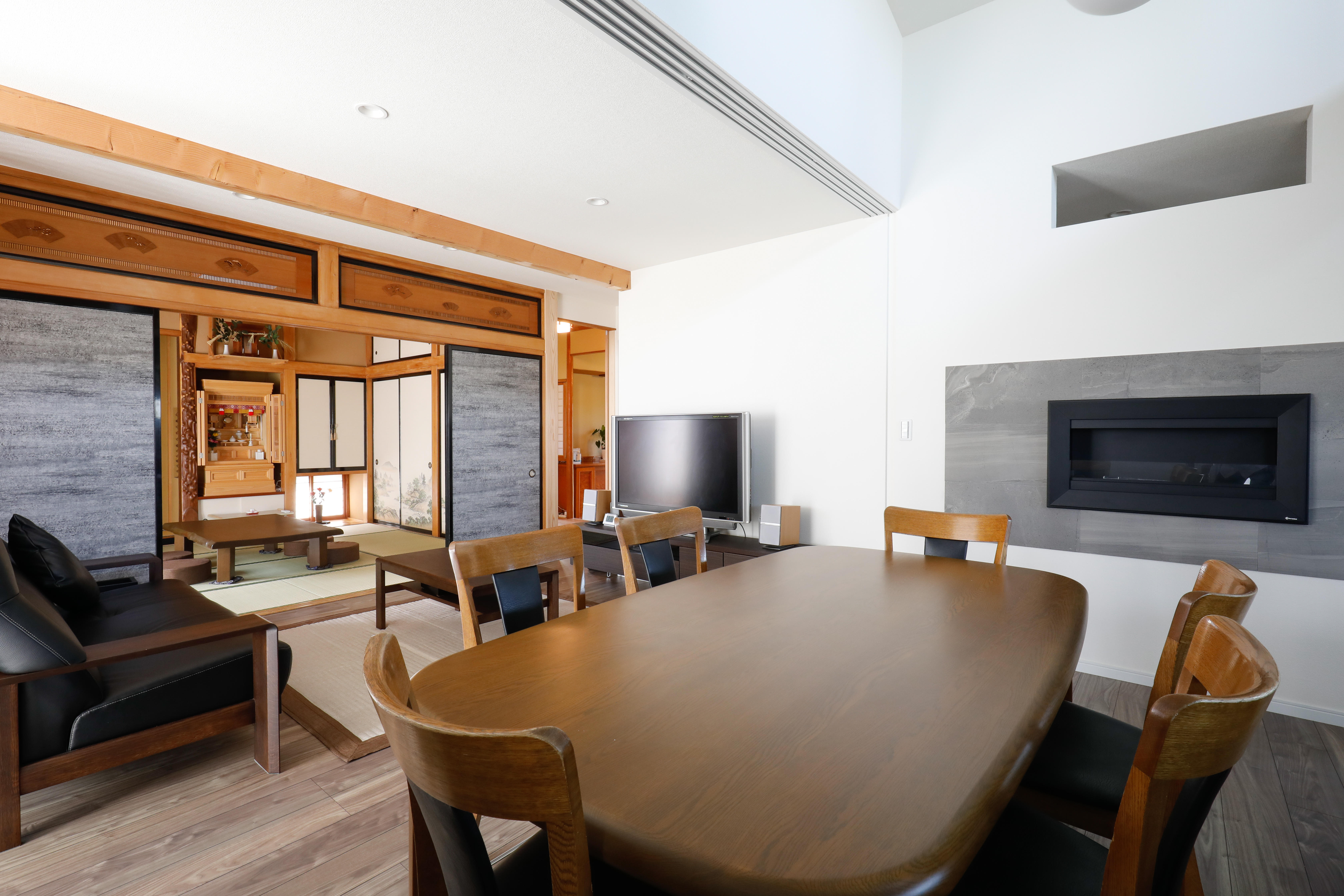 増改築を繰り返したため 今住んでいる家族にとっては動線が悪く、いくつかある個室の収納では収まりきらない物が居住空間を圧迫しているのがお悩みでした。 そこで昔からある玄関から和室の大工さんの術が残る部分はそのまま活かし、家族団らんがかなうゆったりとしたLDKとそれぞれが落ち着いて過ごせる個室を確保しました。