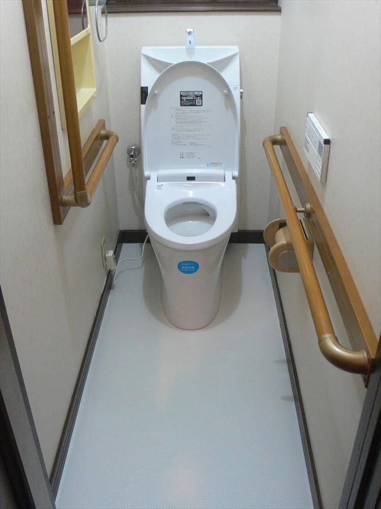 最新トイレは従来品よりもコンパクトな設計の為、 古いままの床だとかえって汚れが目立ってしまうことも。。 トイレ本体の取り換えと同時に床のクッションフロアも 張り替えることで綺麗で清潔なトイレがよみがえります! 導入トイレ:アステオ