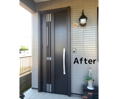 今回は、たった半日で取り換えが完了! 「リシェント」は壁を壊さずに行うカバー工法だから おおよそ1日で玄関ドアリフォームが可能です。 (現場の状況により異なります)