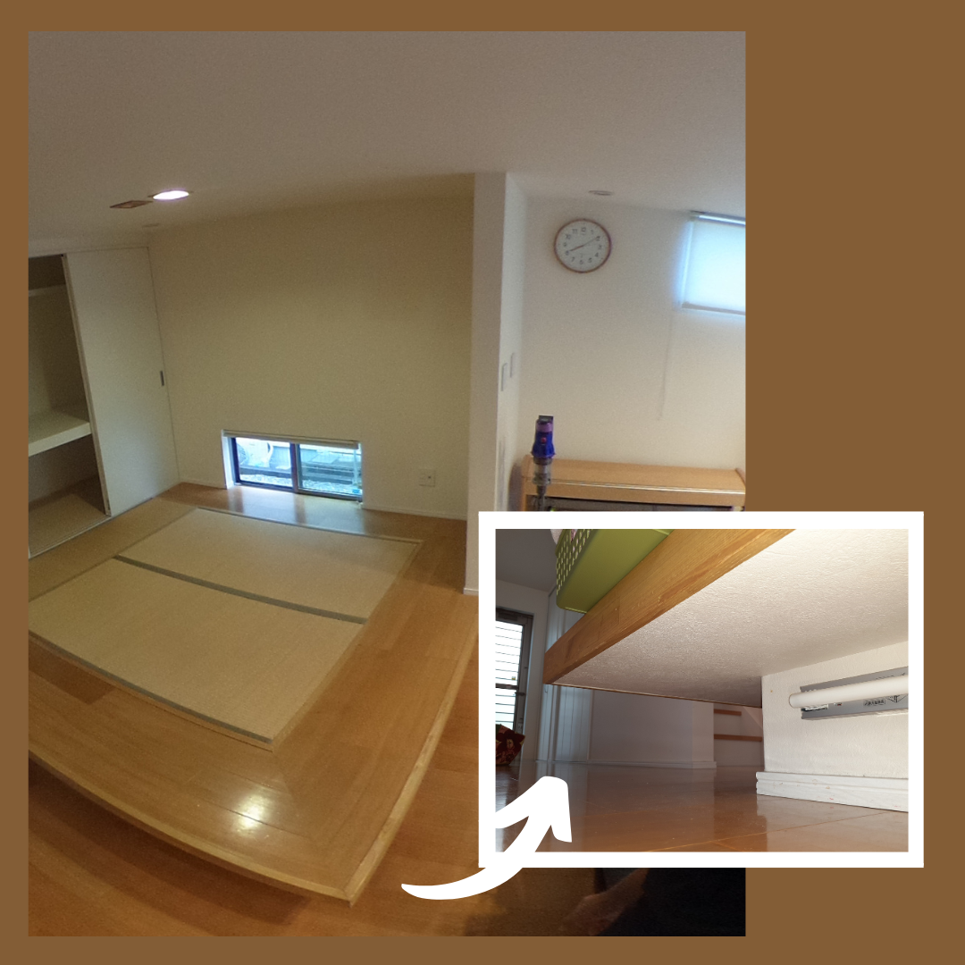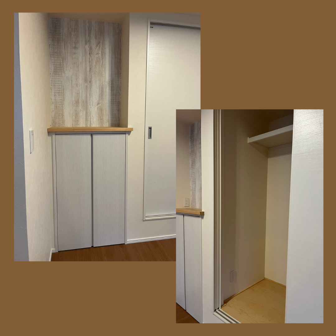 床の間スペースは収納とディスプレイコーナーになりました。既存の押入は中板をはずして収納力をアップ。中にコンセントを新設したので掃除機もしまったまま充電できます。
