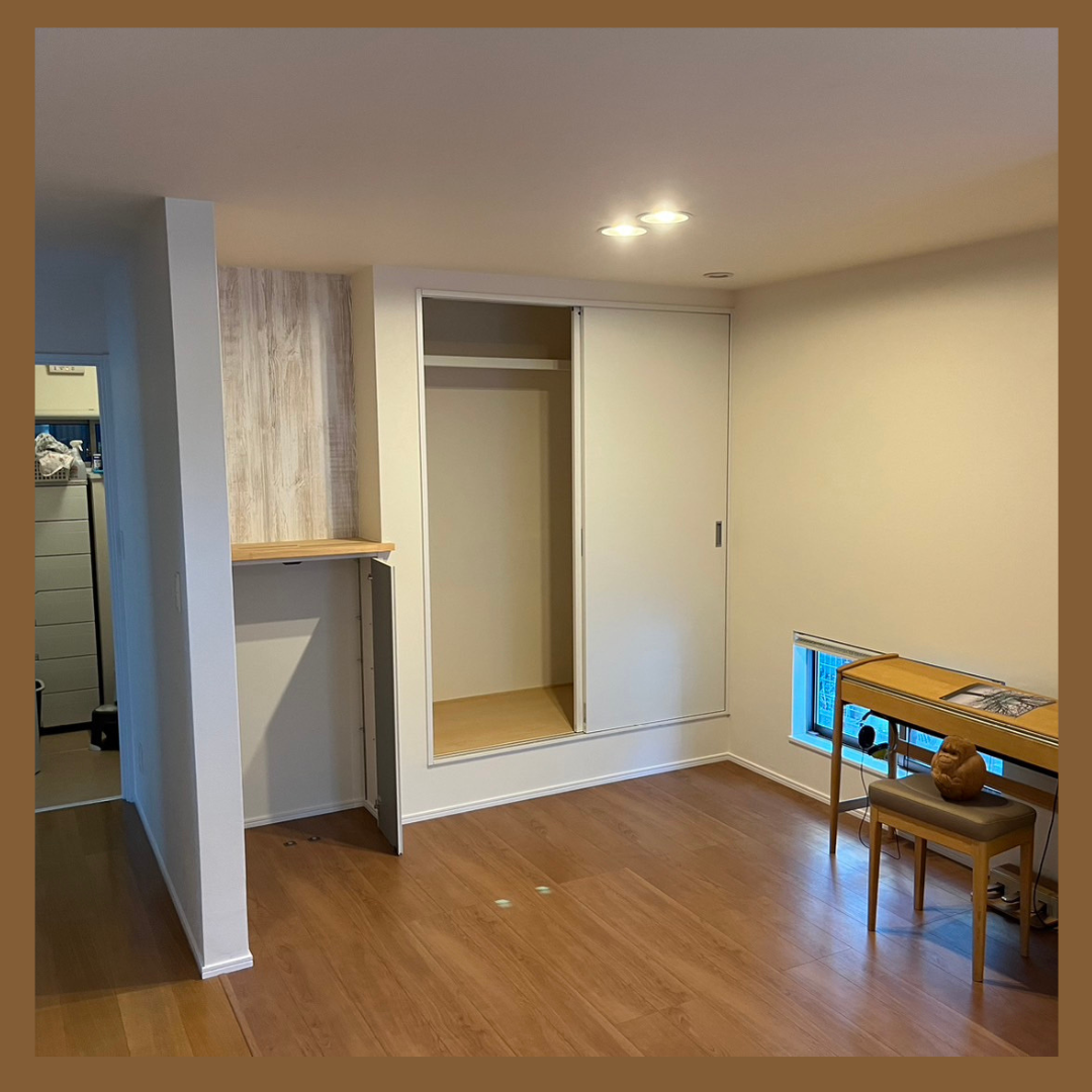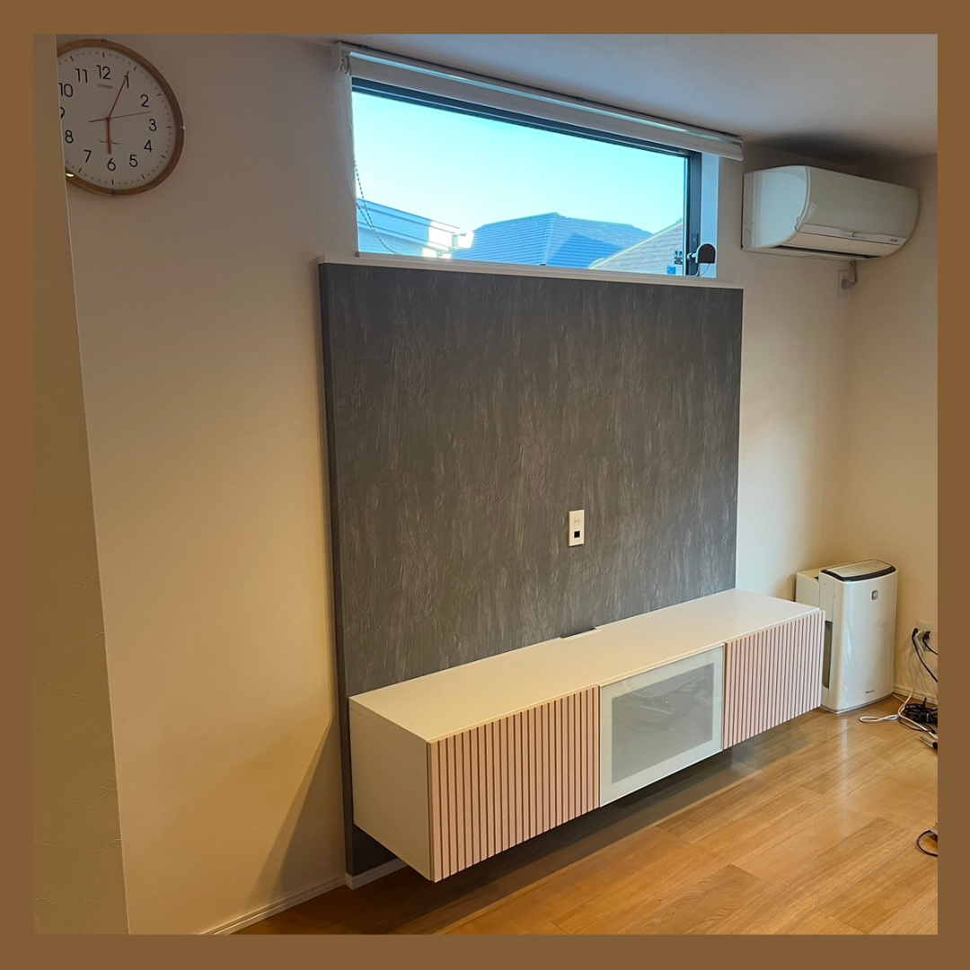 壁掛けテレビを設置するために補強壁を施工させていただきました。必要な配線を壁の中に収めたのですっきりとした仕上がりになりました。