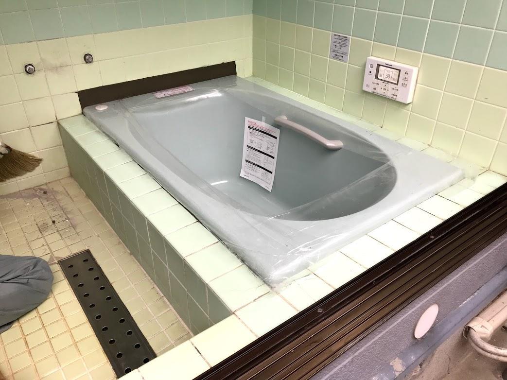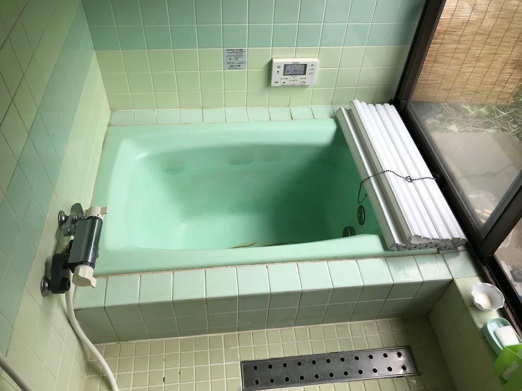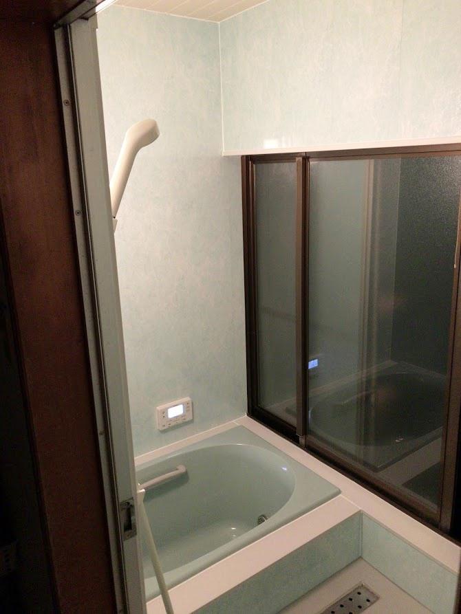 在来工法のタイル張りのお風呂のリフォーム。冷たい床をクッションフロア張りにしてヒートショックを軽減。