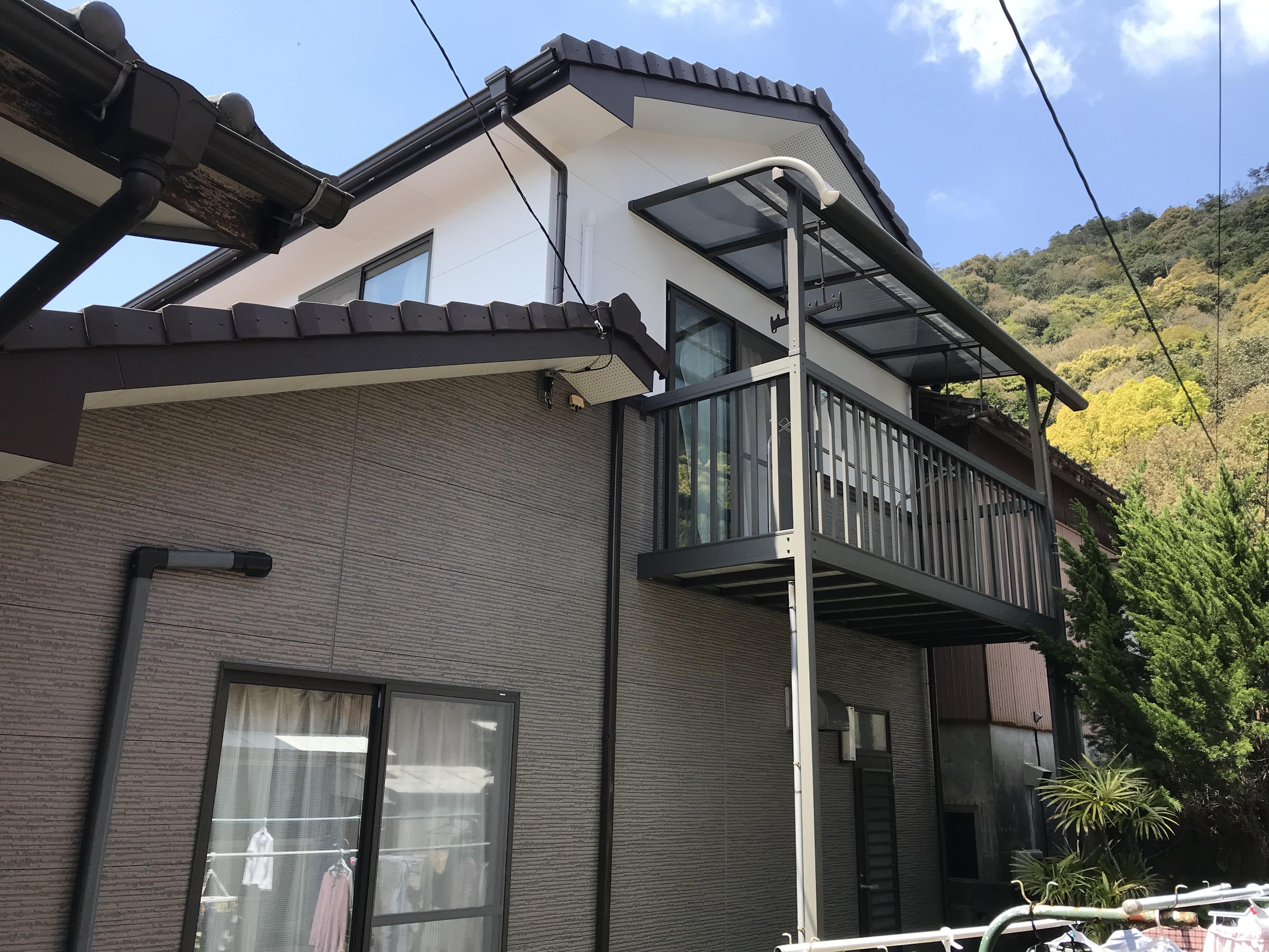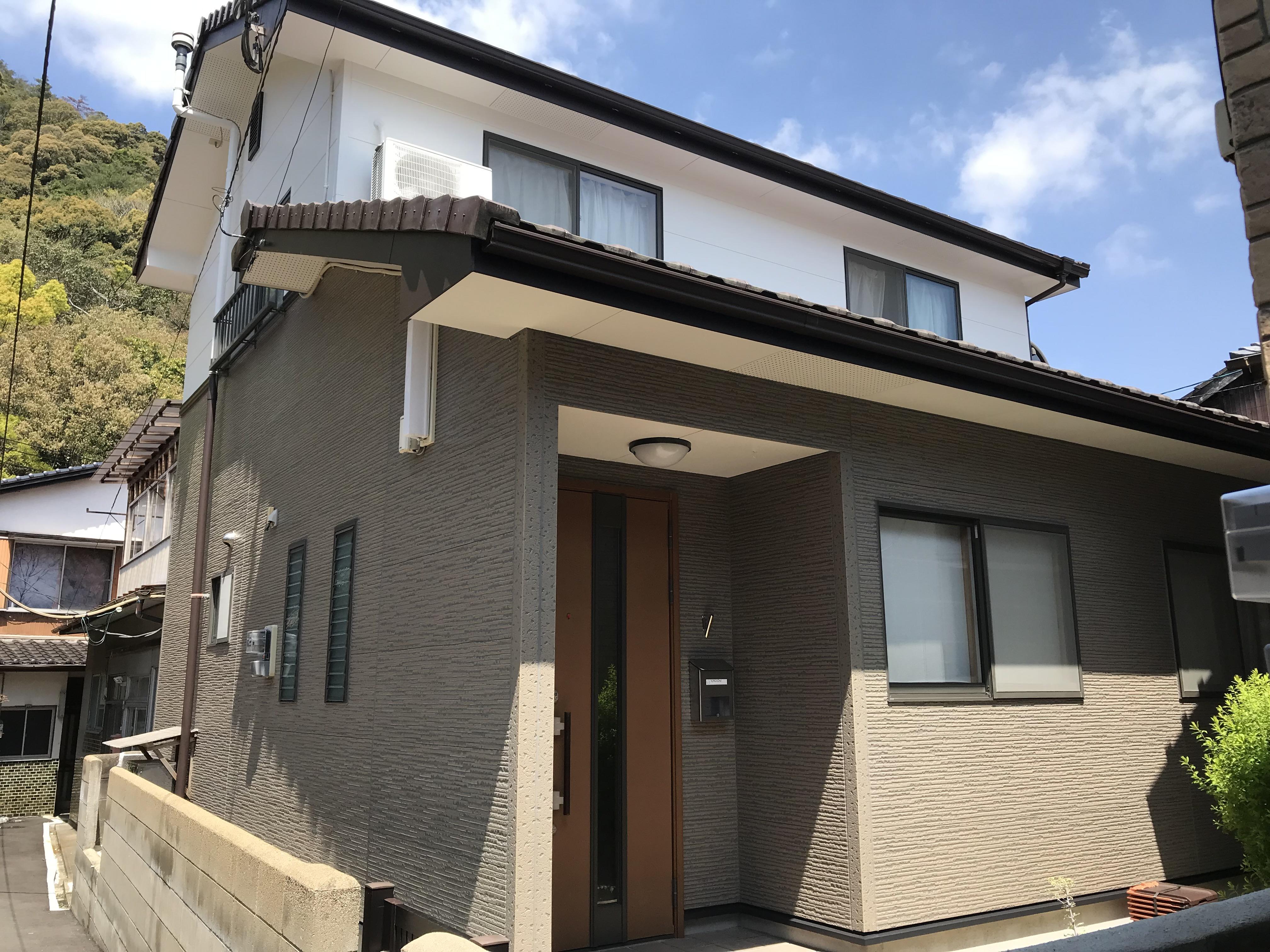 今回の外壁塗装の色は、既存の外壁の色と同じ配色で塗装しています。塗装前の建物とは外観が見違えるように仕上がりました。