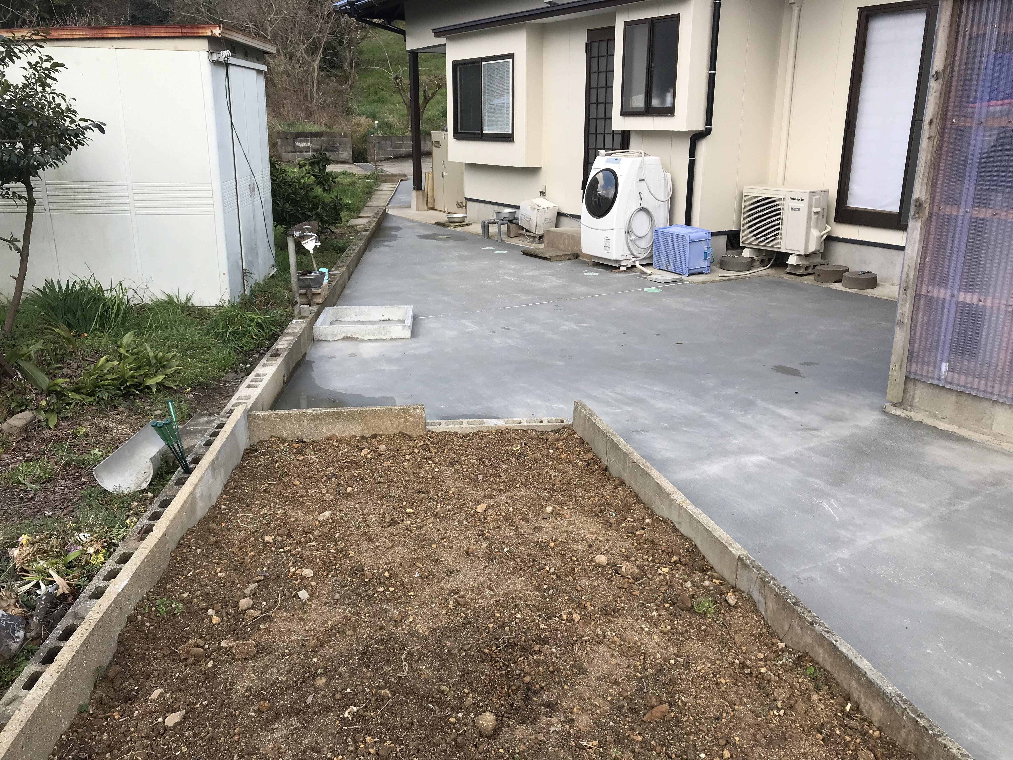 植栽が植えてあった庭もスッキリとコンクリートにして小さい畑スペースを設けました。
