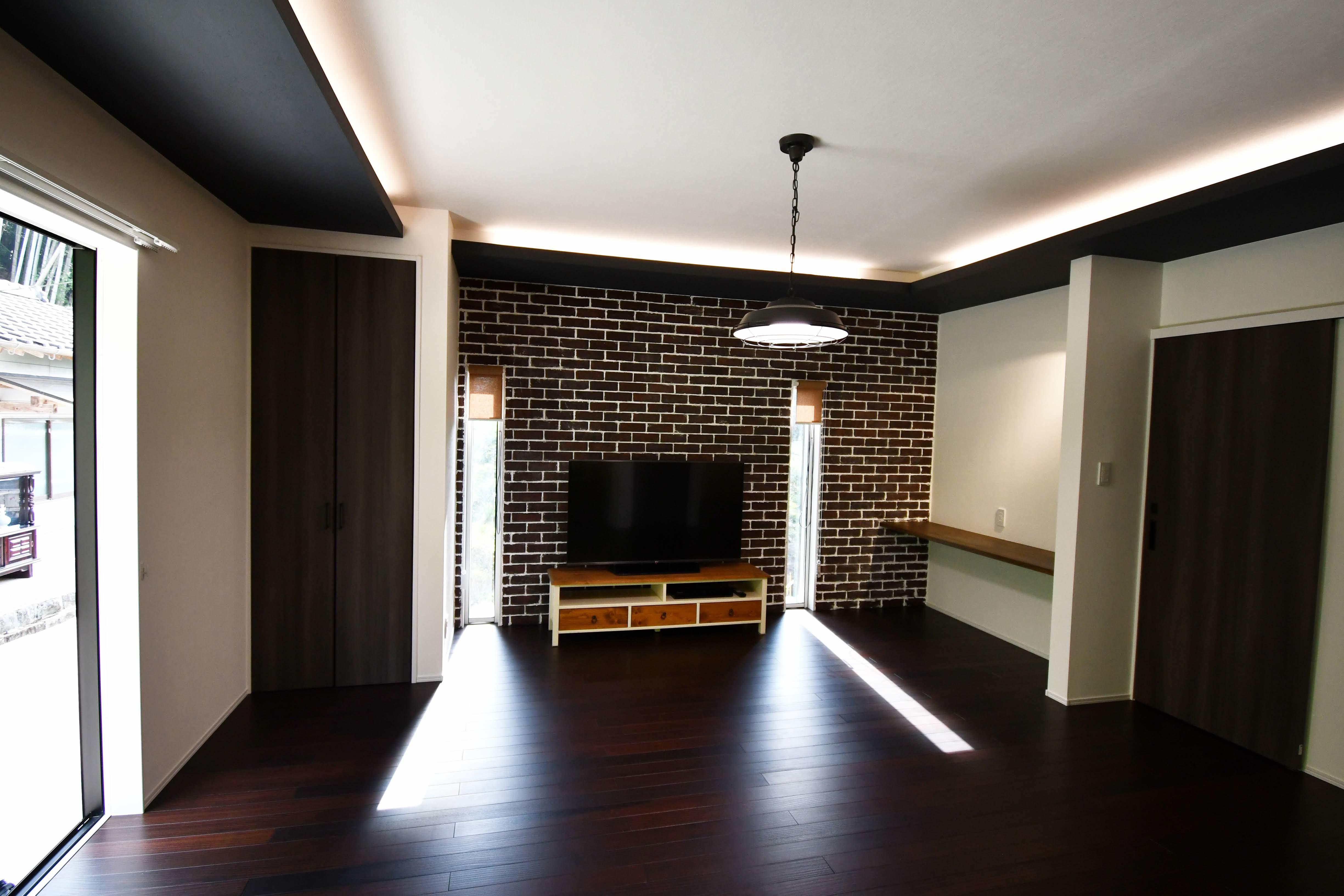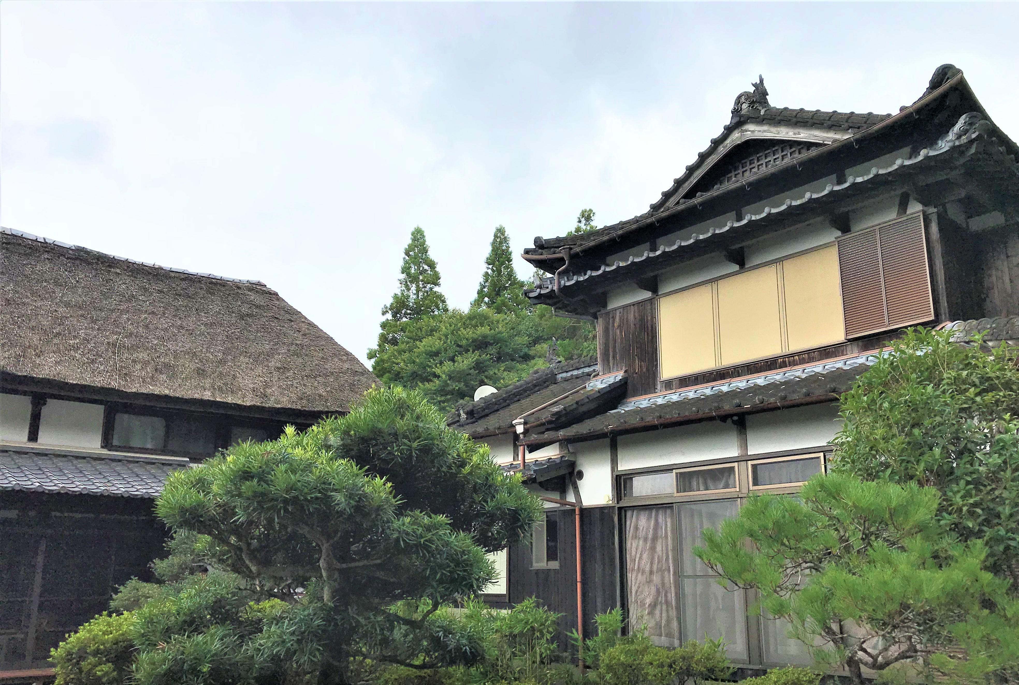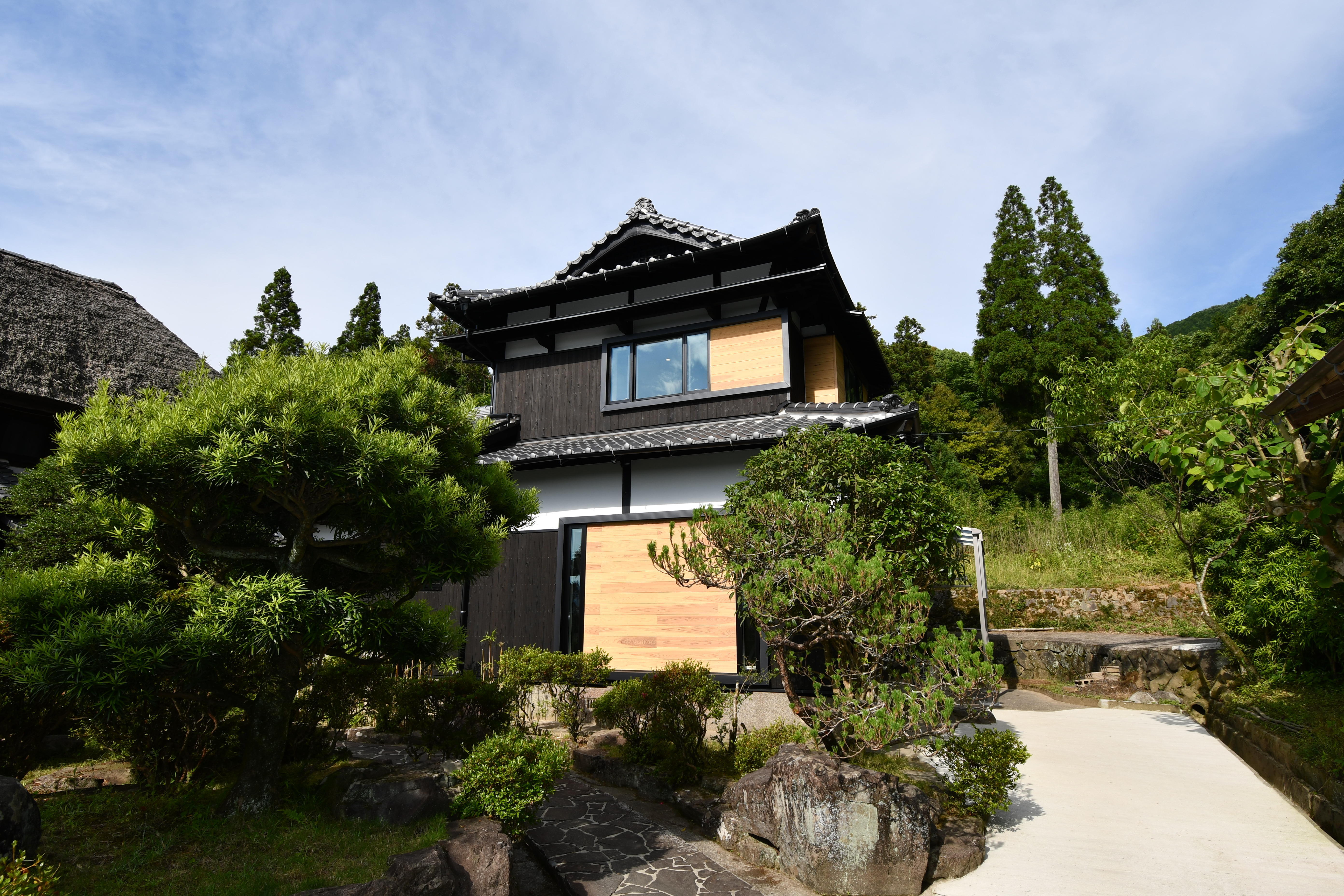 屋根が綺麗に保たれた萱葺きの母屋。その隣に建っていた離れのリノベーション工事でした。既存建物の壁がしっくい壁に腰板の外観。この外観を活かしながら母屋の外観にも配慮しつつ、モダンな 外観に仕上がりました。内部の構造材もできるだけ既存を利用し、柱は残しながら開放的な空間に生まれ変わりました。