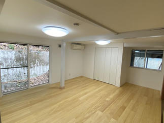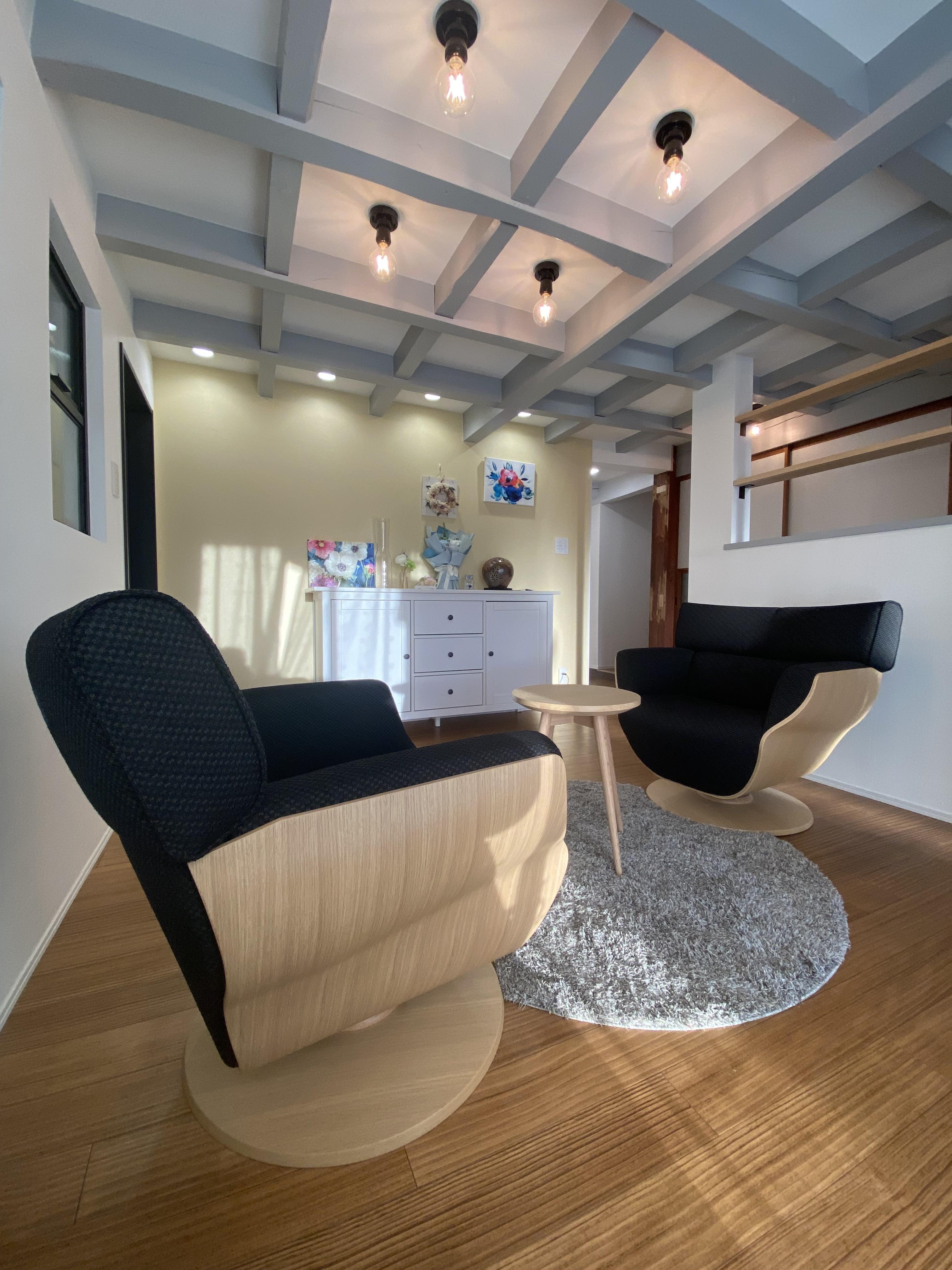 築70年を超えるおじい様の代から住み続ける大きな家。 天井が高く湿気が多暗くとても寒い家だったのが、土間の物置き部屋はあたたかい家族が集う素敵なリビングに変わり、アクセントにレンガ調のクロスとヴィンテージ感のあるドアで個性的な空間となりました。 湿気が多いことが悩みのお母様のお部屋は構造補強して快適で明るい空間へと改修しました。