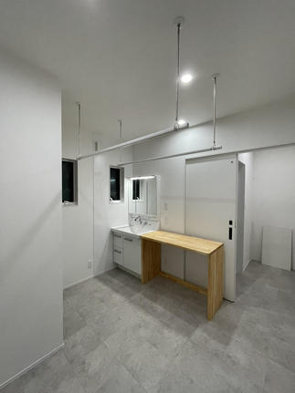 利用していない広い座敷や無駄にあまっている部屋があったが、独立型だったキッチンをオープンにし、クローゼット、お風呂、洗面脱衣室の水回りの動線を工夫して使いやすくなり、家族とのコミュニケーションを取りながらお料理を楽しめるようになりました。 倉庫はこれからご主人様が棚を作ったり、趣味の釣り具道具に囲まれた自分だけの時間を堪能できるワクワク空間に。階段から子供達が2階へ上がる様子が見えるデコ窓もお気に入りです。