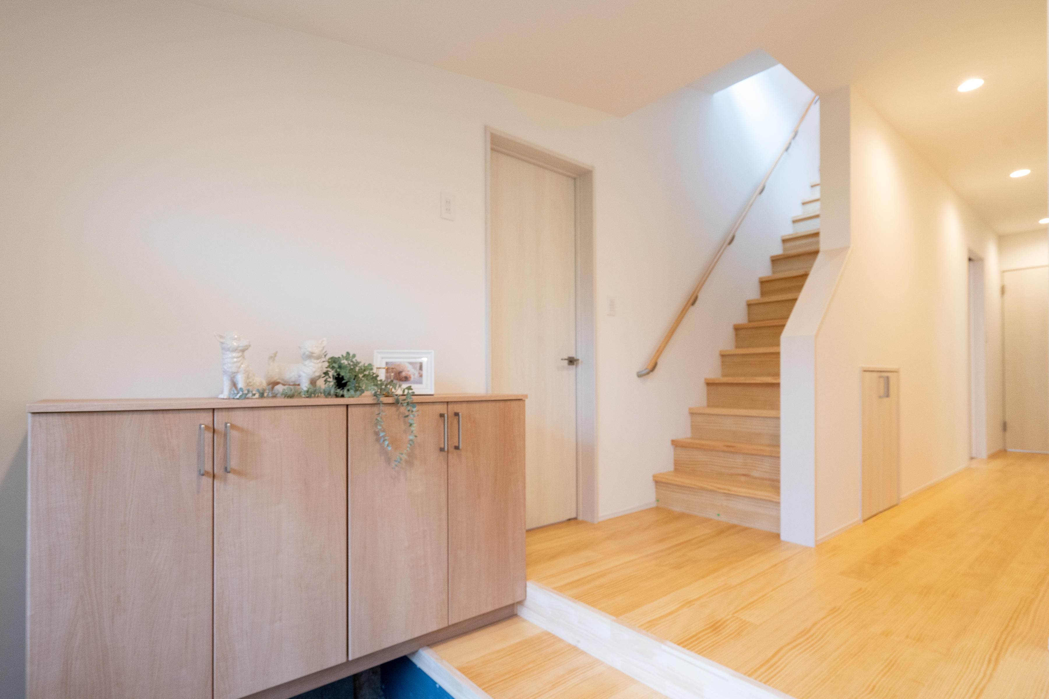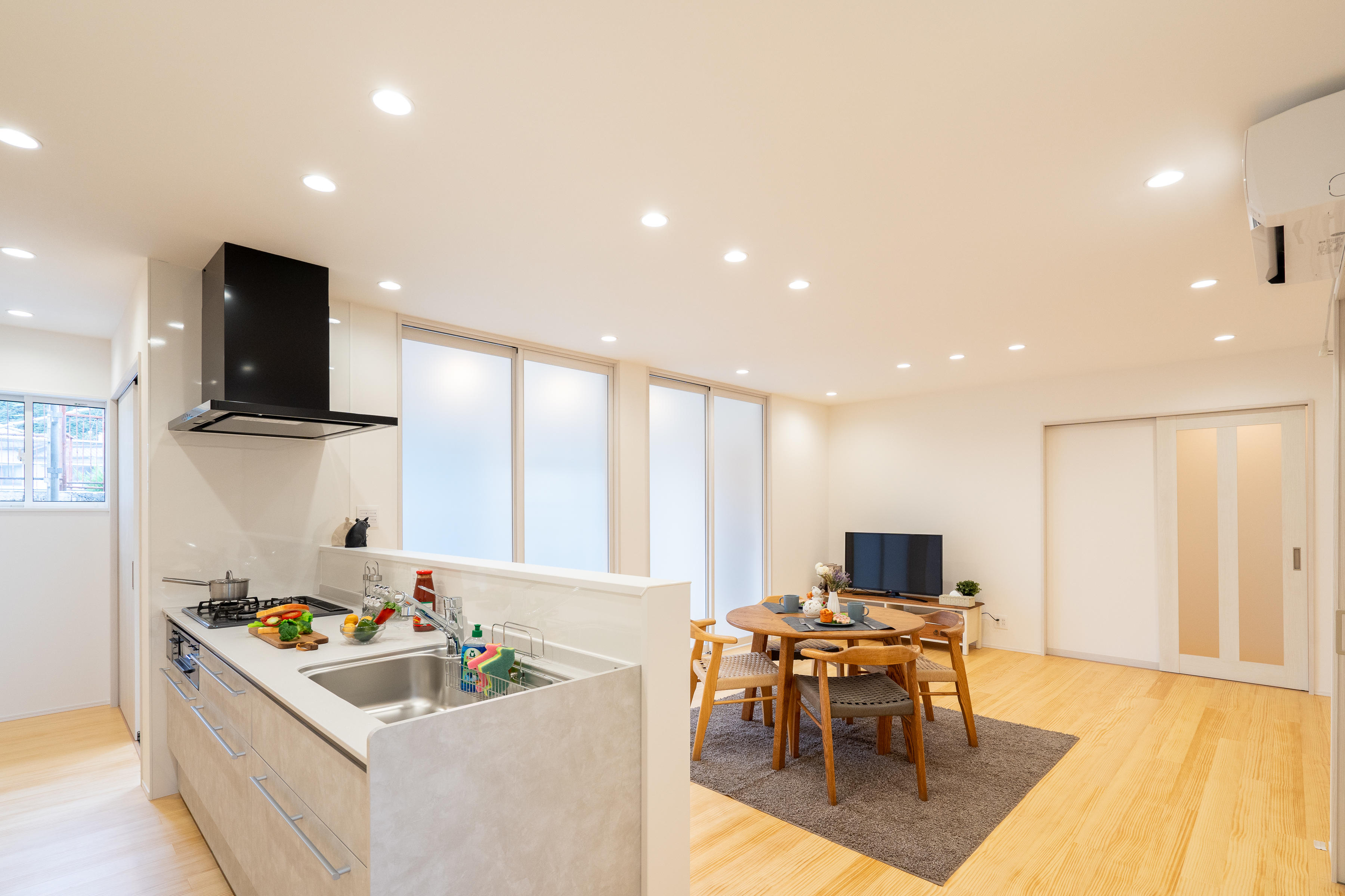 LDKを中心に親世帯・子世帯のスペースをほどよい距離感で生活できるようなプランにしました。さらに、耐震性・断熱性を向上させ、安心して快適に暮らせる家へとリノベーションしました。