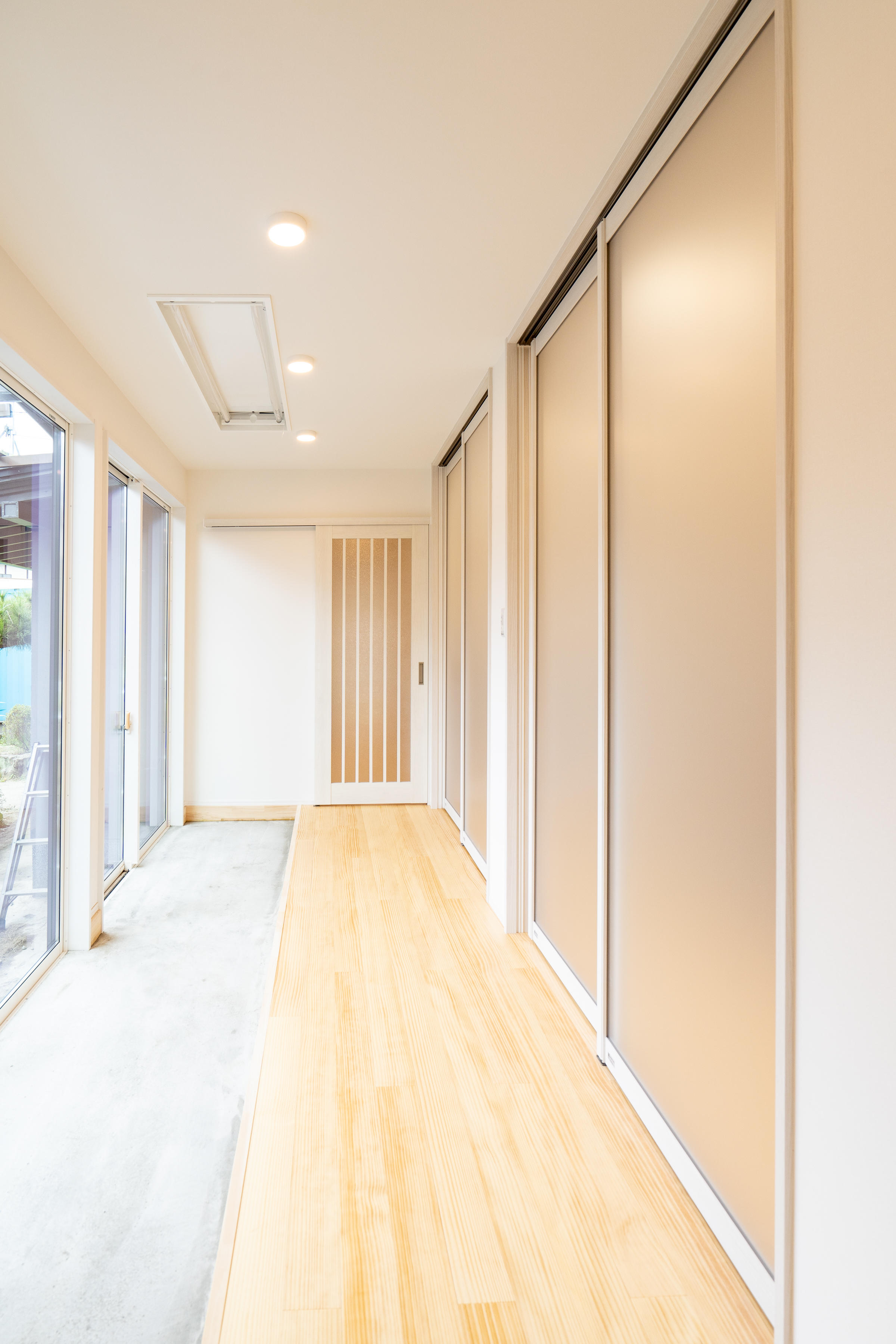 ご結婚と同居を機にフルリノベーションをされ、基礎の補強をし、耐震性もアップさせました。 日当たりの良いLDKのお縁を半分土間にして大きな窓から外が眺めたいとの希望も叶って、採光や採風が取れる素敵なお縁に仕上がりました。ご両親の住居スペースにも新たにキッチンを設置、なるべく段差をなくすなどのバリアフリーにも配慮しました。 それぞれ開放的なスペースとプライバシーを両立させ、住み慣れたお家が新しいわが家へと生まれ変わりました。