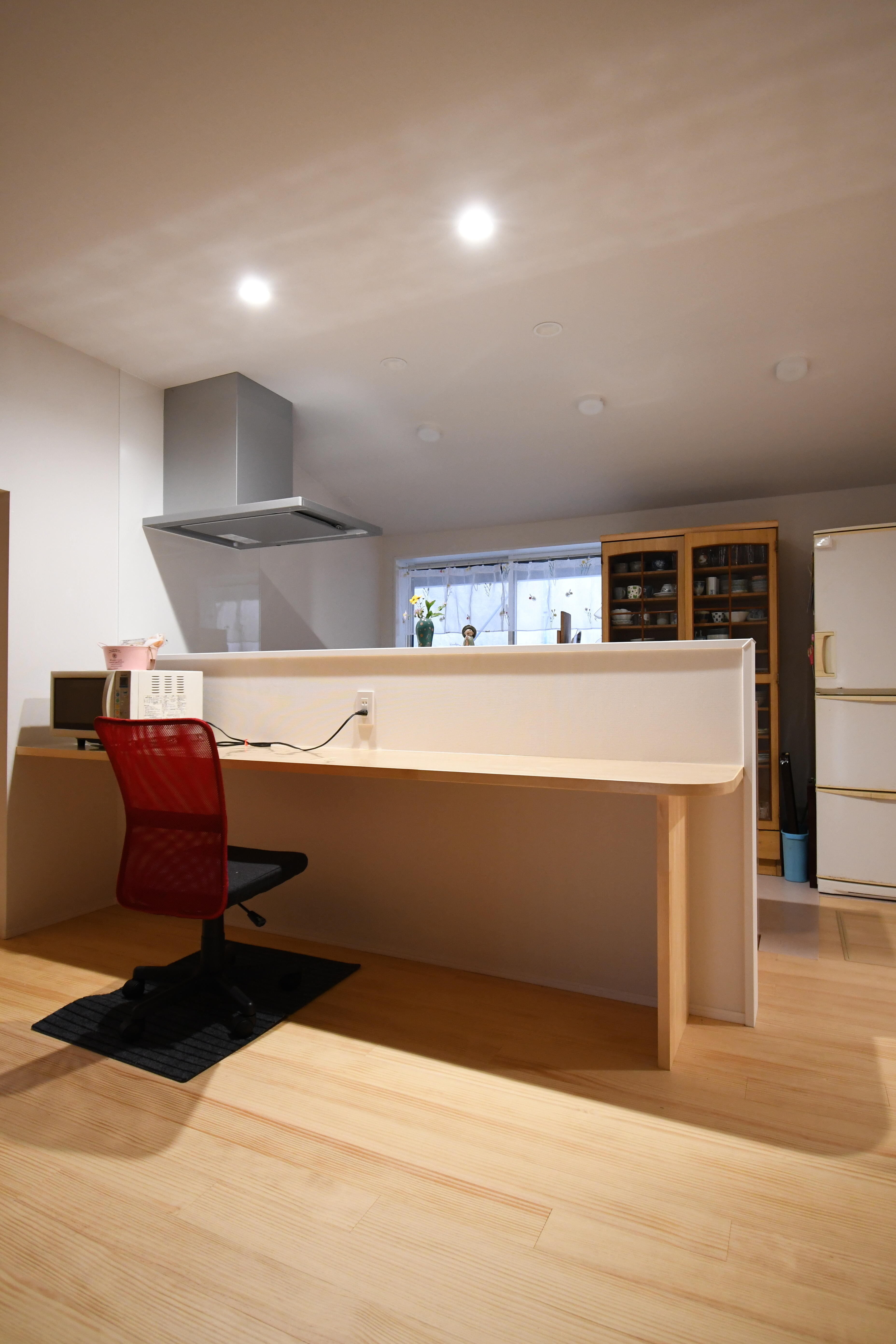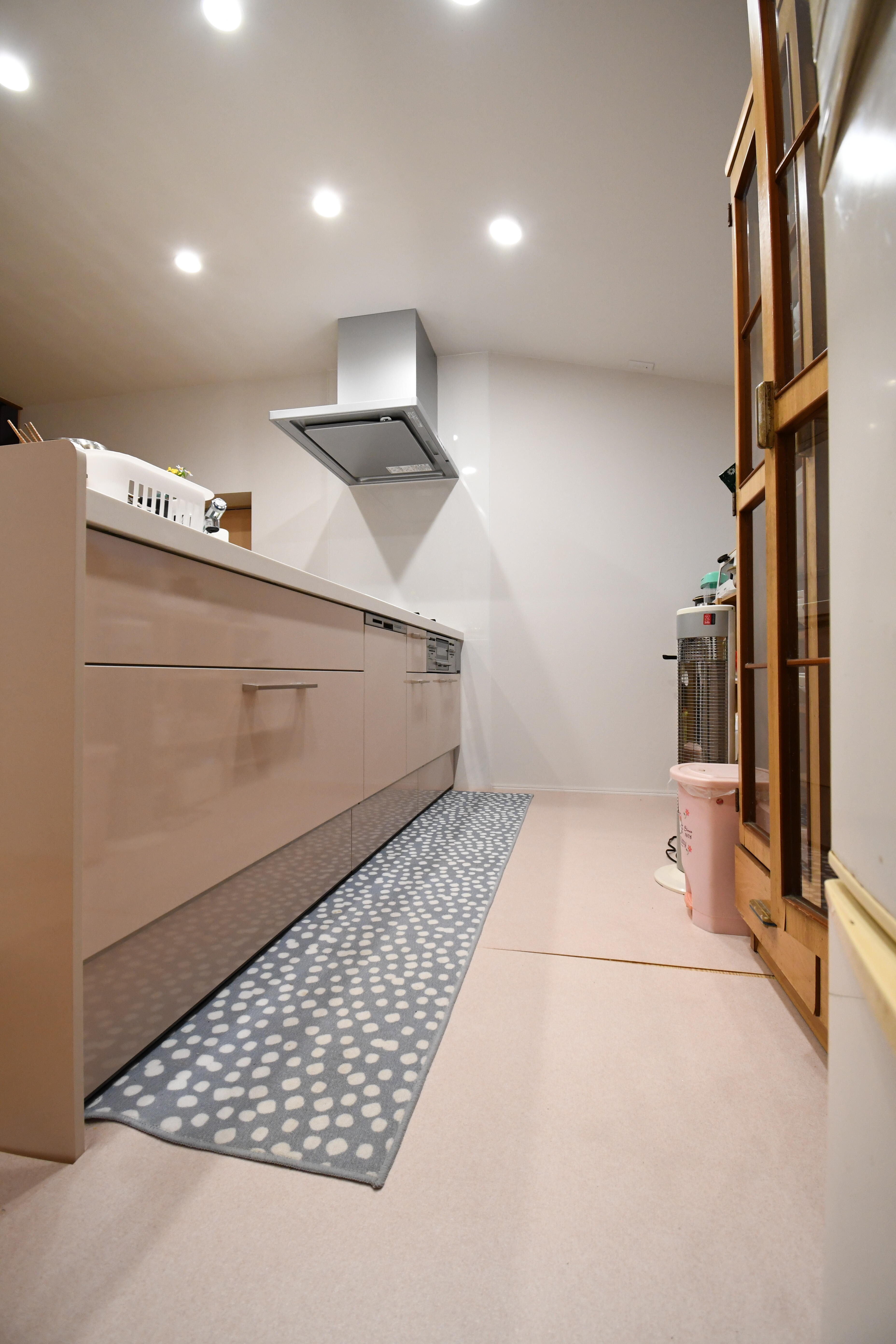 対面式のダイニングキッチンにし、ご夫婦お二人でお料理ができるように、洗面脱衣、浴室もダイニングキッチンからいけるように動線を短くしてとても家事がしやすいお家に改装しました。