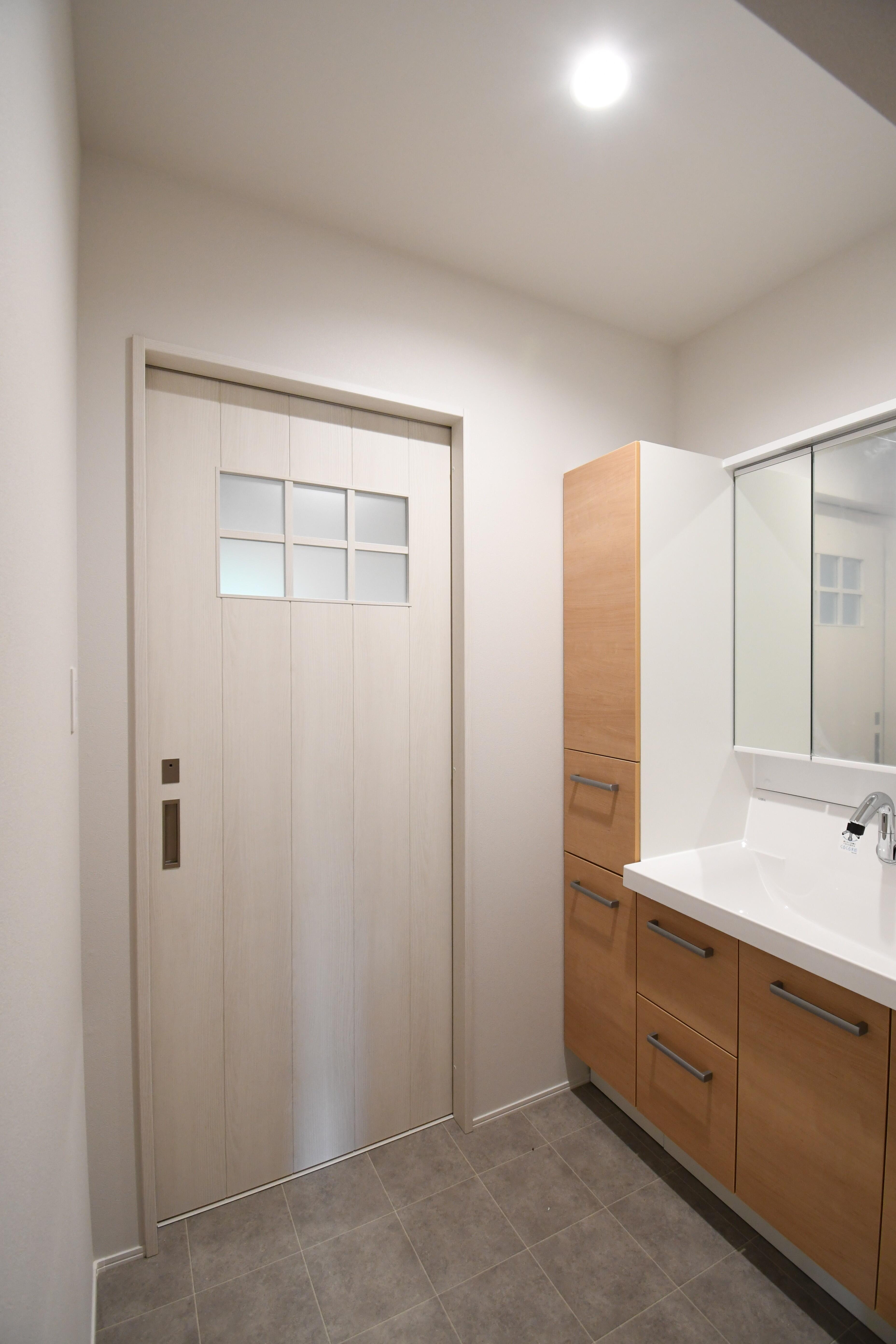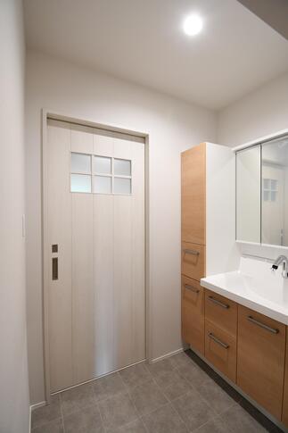 隣の脱衣室は洗面コーナーと分けて広さを確保し、来客時も生活感を見せることなく暮らしのストレスも減らせます。