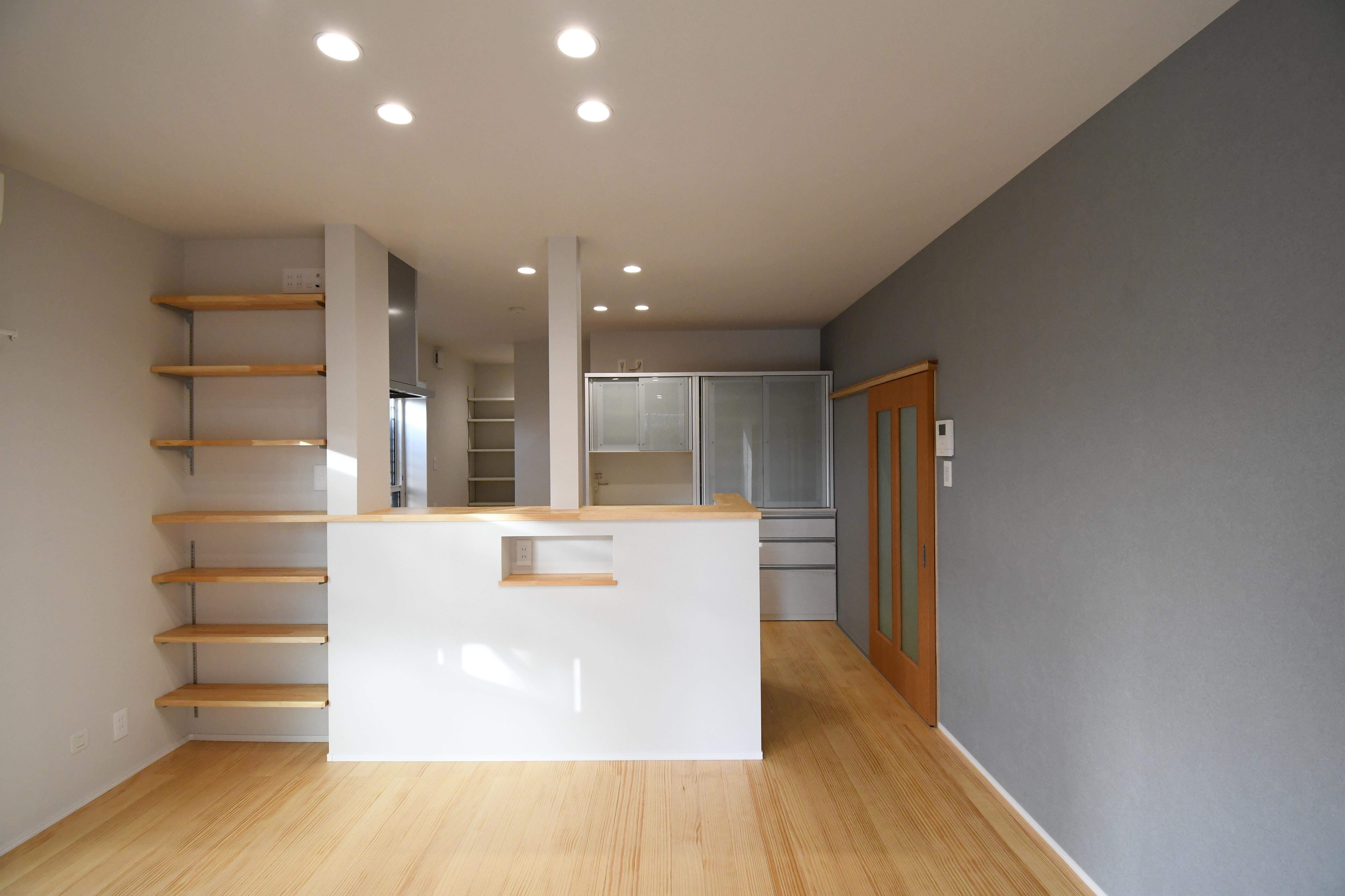 1階の壁で分かれていたキッチン、和室、ダイニングは全体をひと続きの広いLDKへと改修して北側の奥まった場所にあったキッチンは対面式のキッチンに。後ろには十分な広さのパントリーも設けて、南側からの明るさと開放感たっぷりのキッチンに生まれ変わりました。