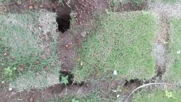 土をどけると穴があいてました!