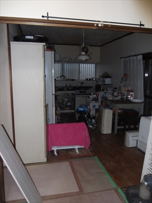 ■台所だった場所はフロア、クロスを貼り広々とフリースペースに。ワンちゃんの遊び場になってます。